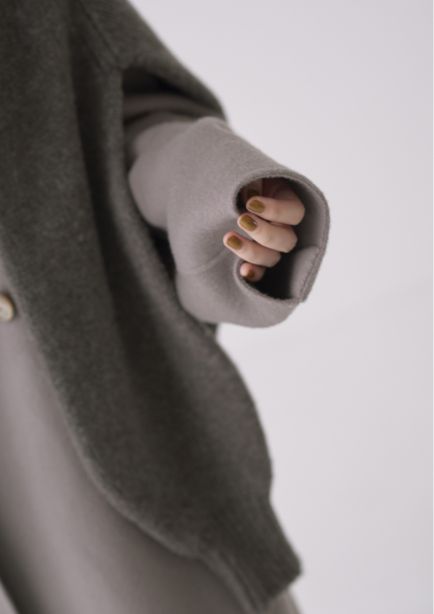 袖口にダーツを施し、袖に丸みを作ることで女性らしいシルエットに。