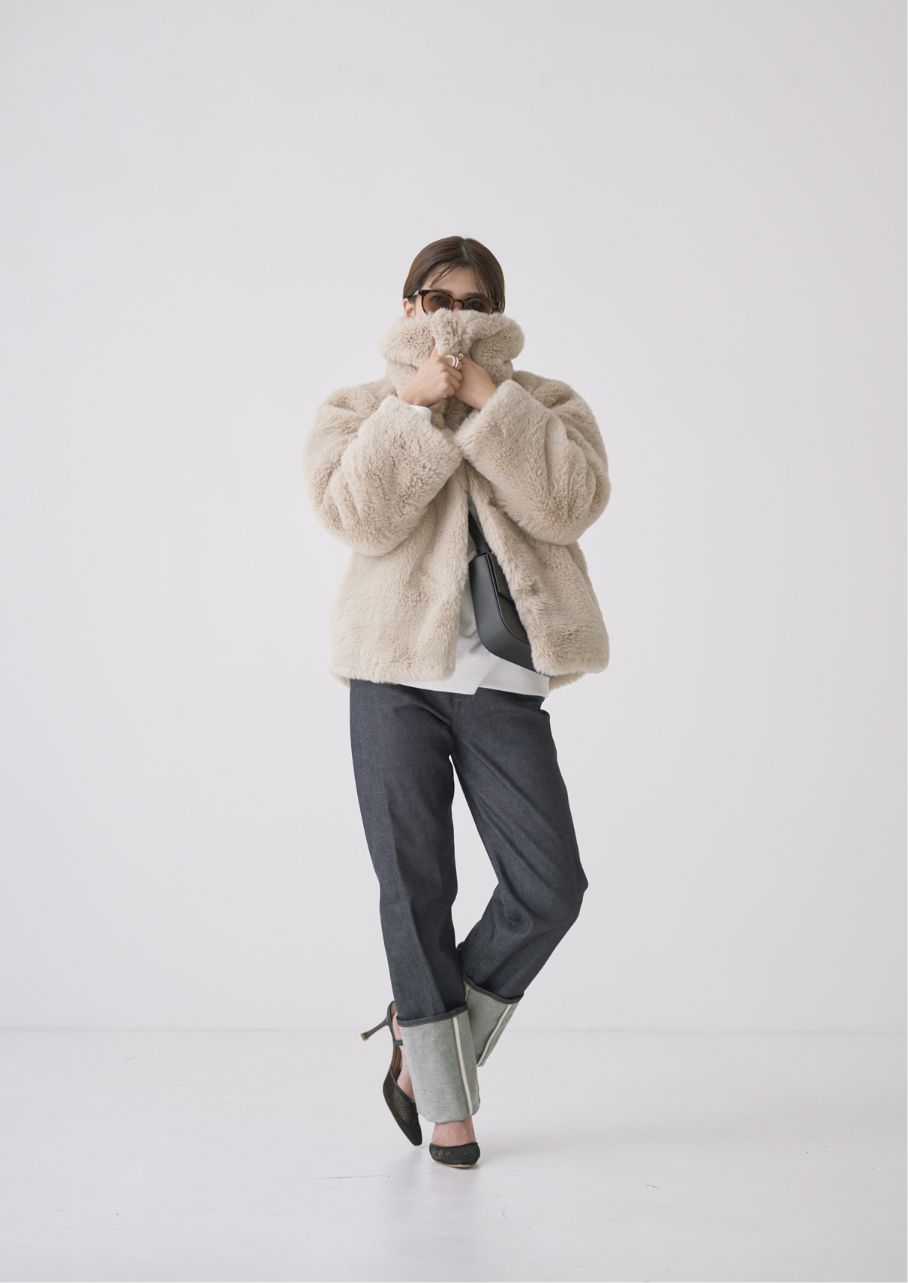 リアルのような表情のエコファーは見た目も暖かい、WEB限定の"GALLARDAGALANTE NAVY"のファーブルゾン。