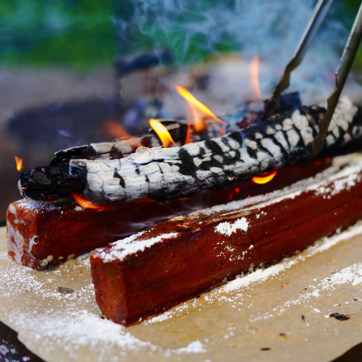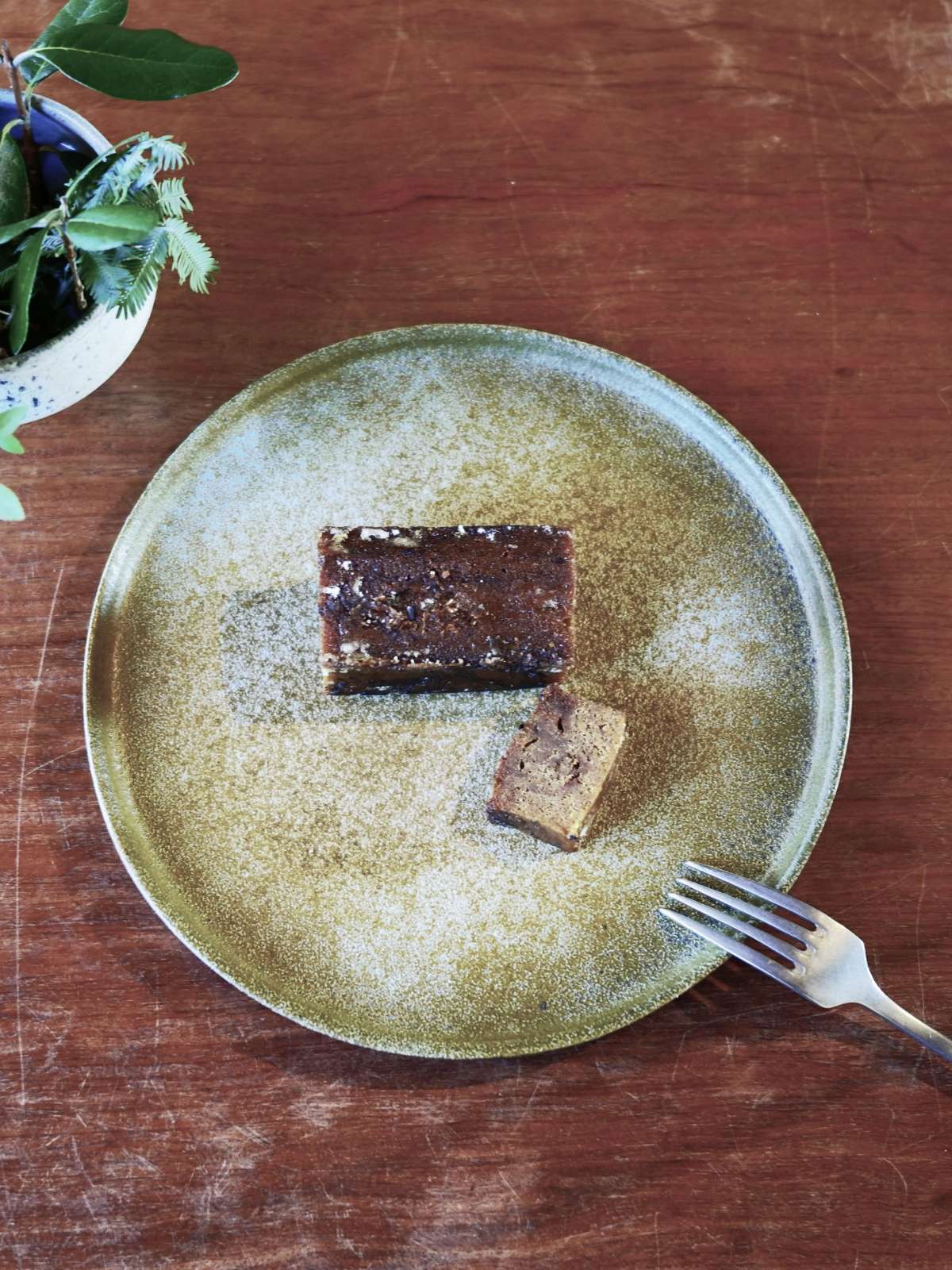 自家菜園で育てたハーブや野草、フルーツを使い、自然のなかで薪火料理を楽しむことができる東京・深大寺のレストラン「Maruta」から初登場したお菓子が「MAKIBI cake」。ベースのパウンドケーキに濃厚なキャラメル、スモーキーな香りをもつウイスキー、薪火の香りをまとわせたキャラメルケーキです。その強い香りには、薪火でケーキを炙っている風景が目に浮かぶよう。冷やして、常温で、温めてと、温度帯によって食感や香りの立ち方が変わるのも特徴。ウイスキーや赤ワインなどお酒にもよく合う、大人のケーキです。