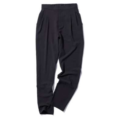 裾のすぼまったパンツはあまり履いてこなかったのですが、するりと落ち感のある素材と程よい光沢感が女性らしく、とても気に入りました!歩く所作まで、どこかエレガントに見せてくれる素材感にハマりそうです!