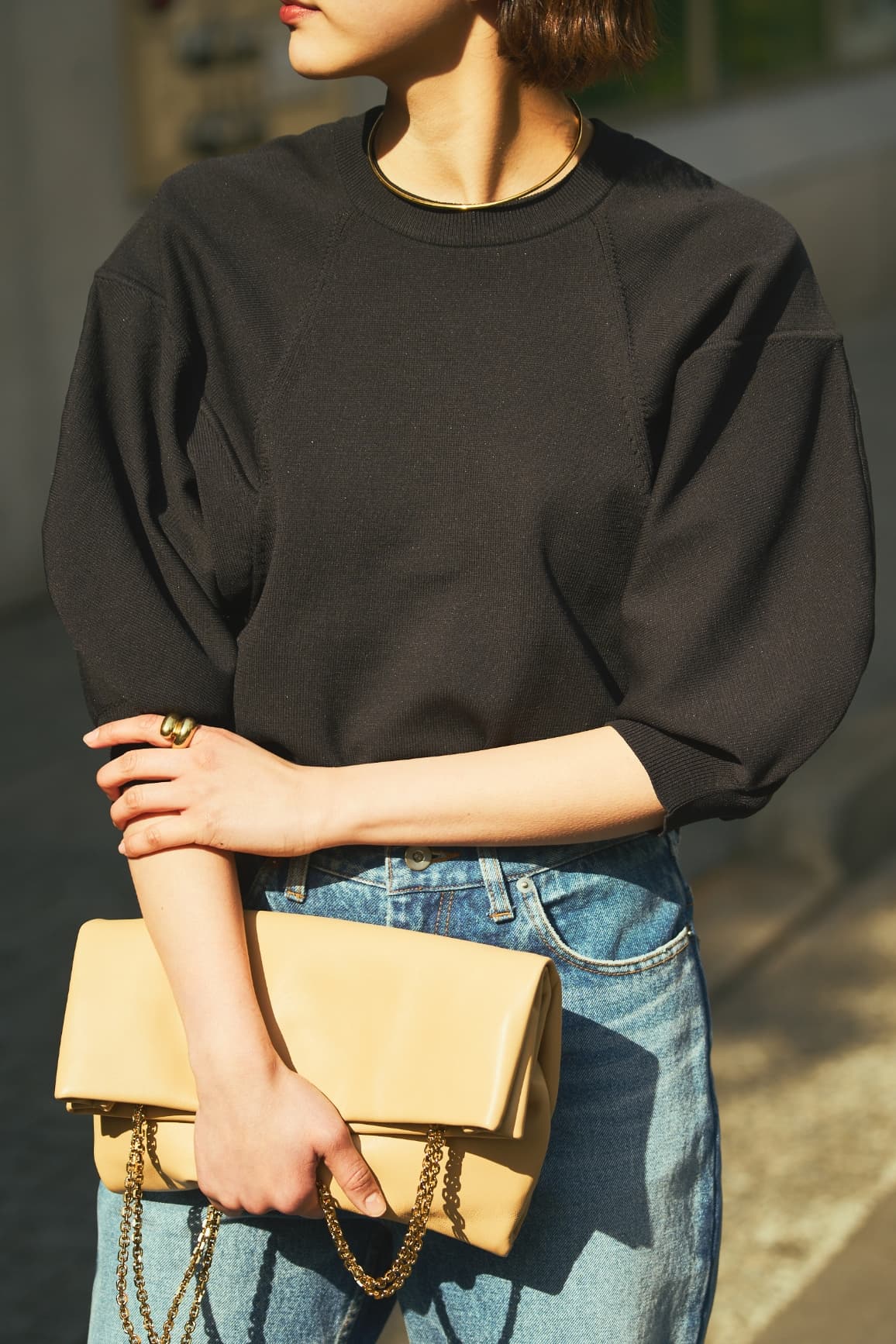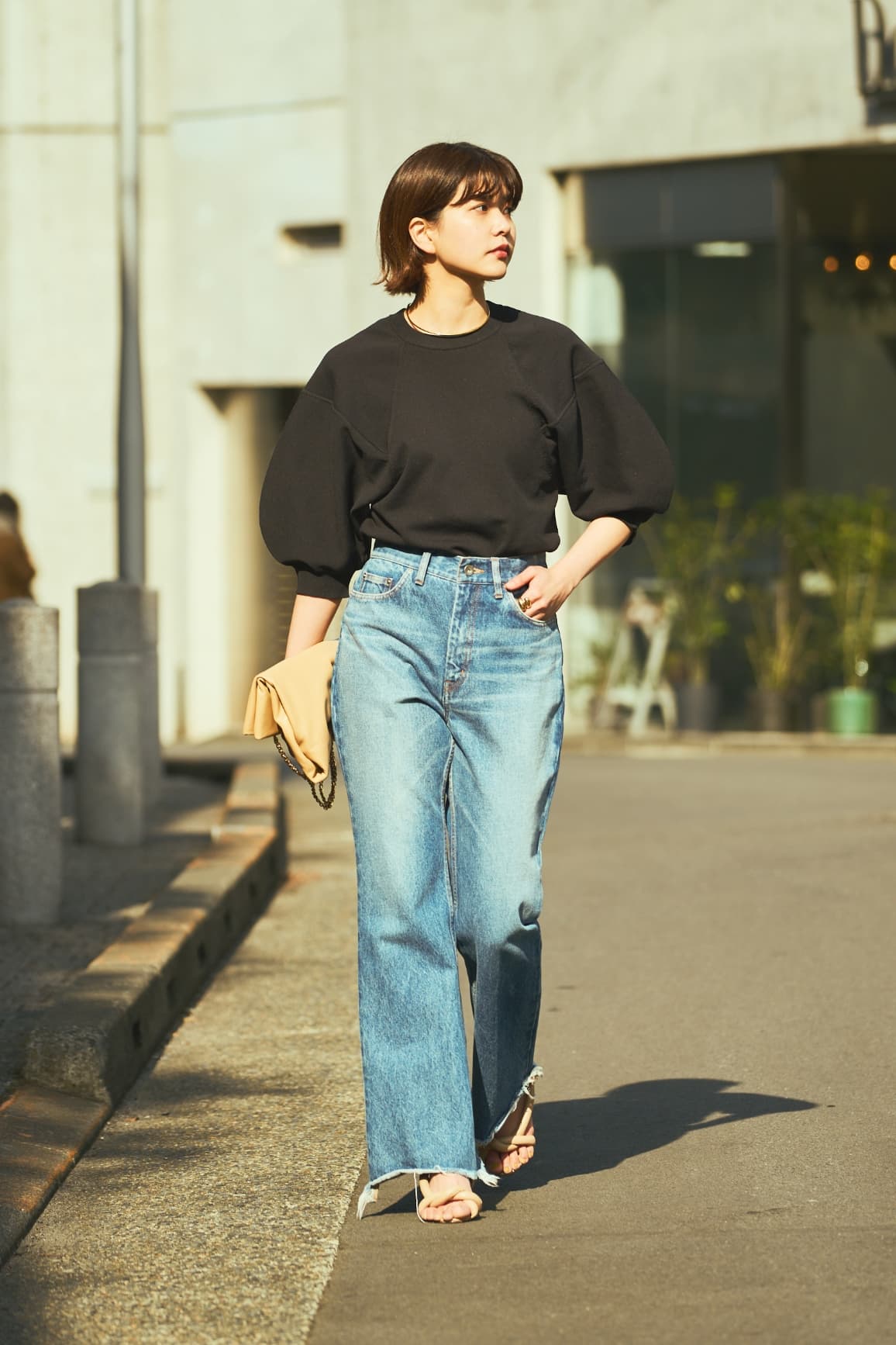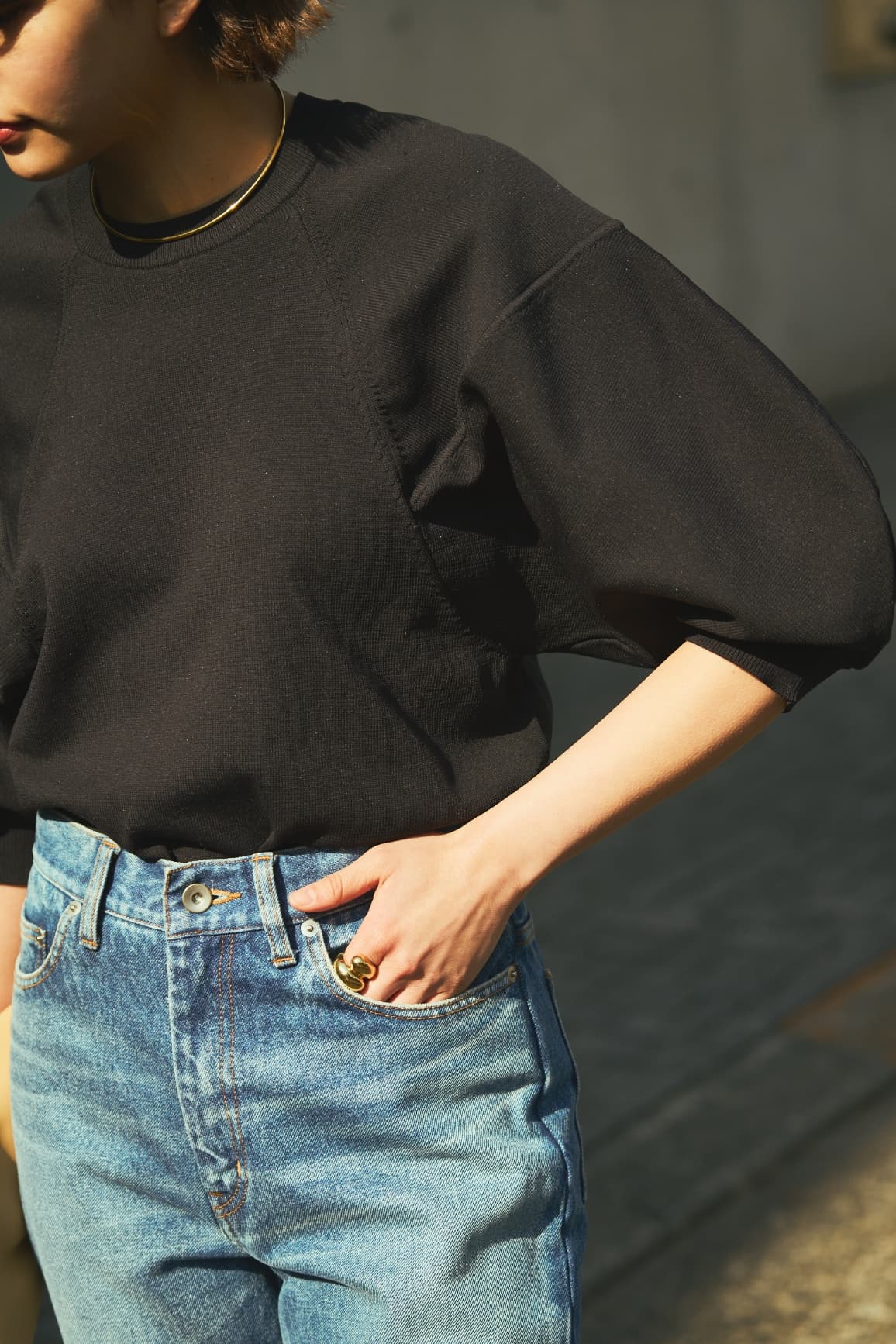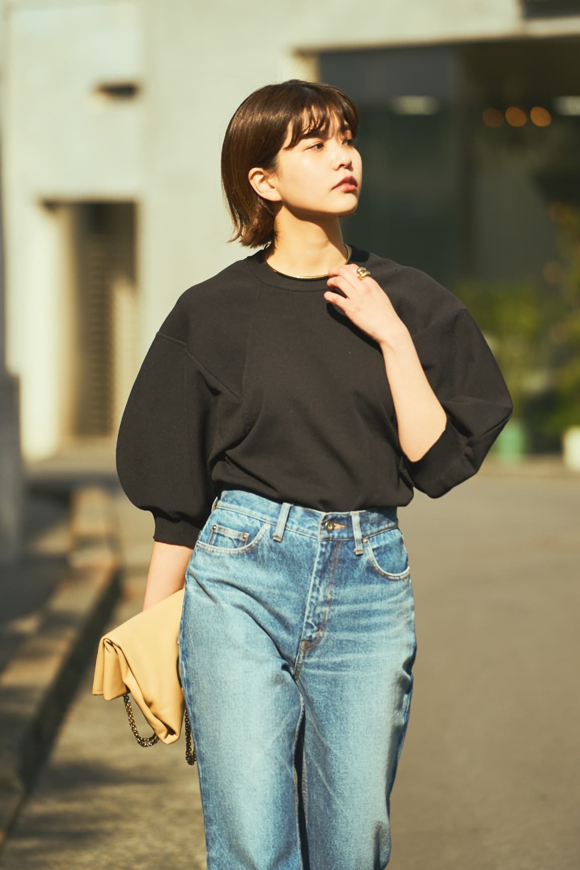 「シックな黒という選択もポイント。カジュアル派の大半は辛口ベースだと思うんです。だからと言って無難な黒にするのではなく、ときに甘さと意思のある黒選びを。いつものスタイルに小さな変化が生まれます」。