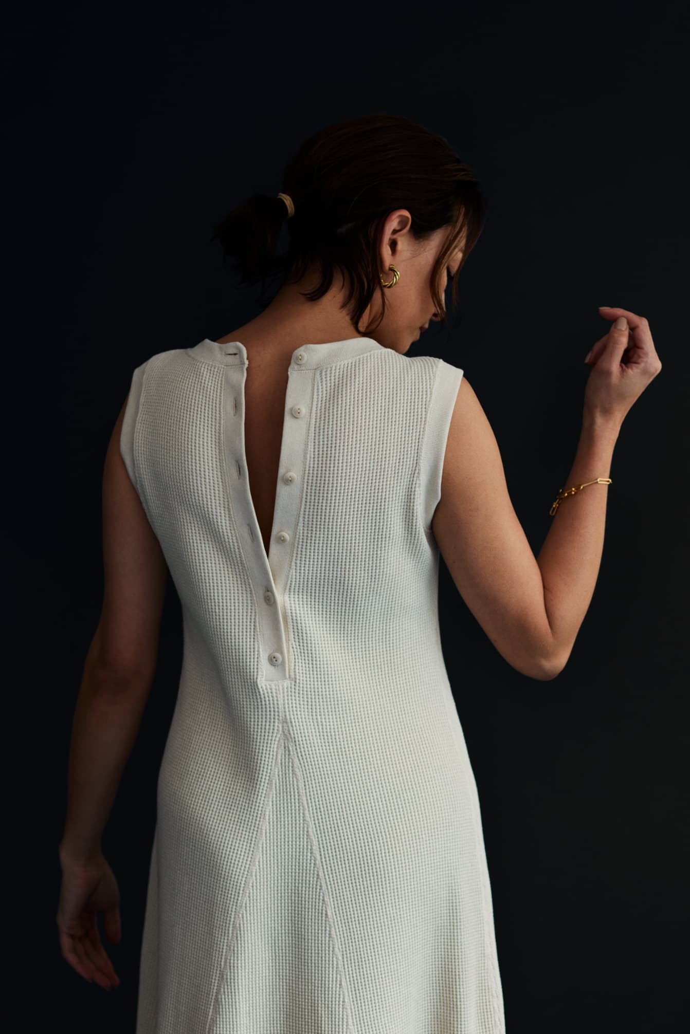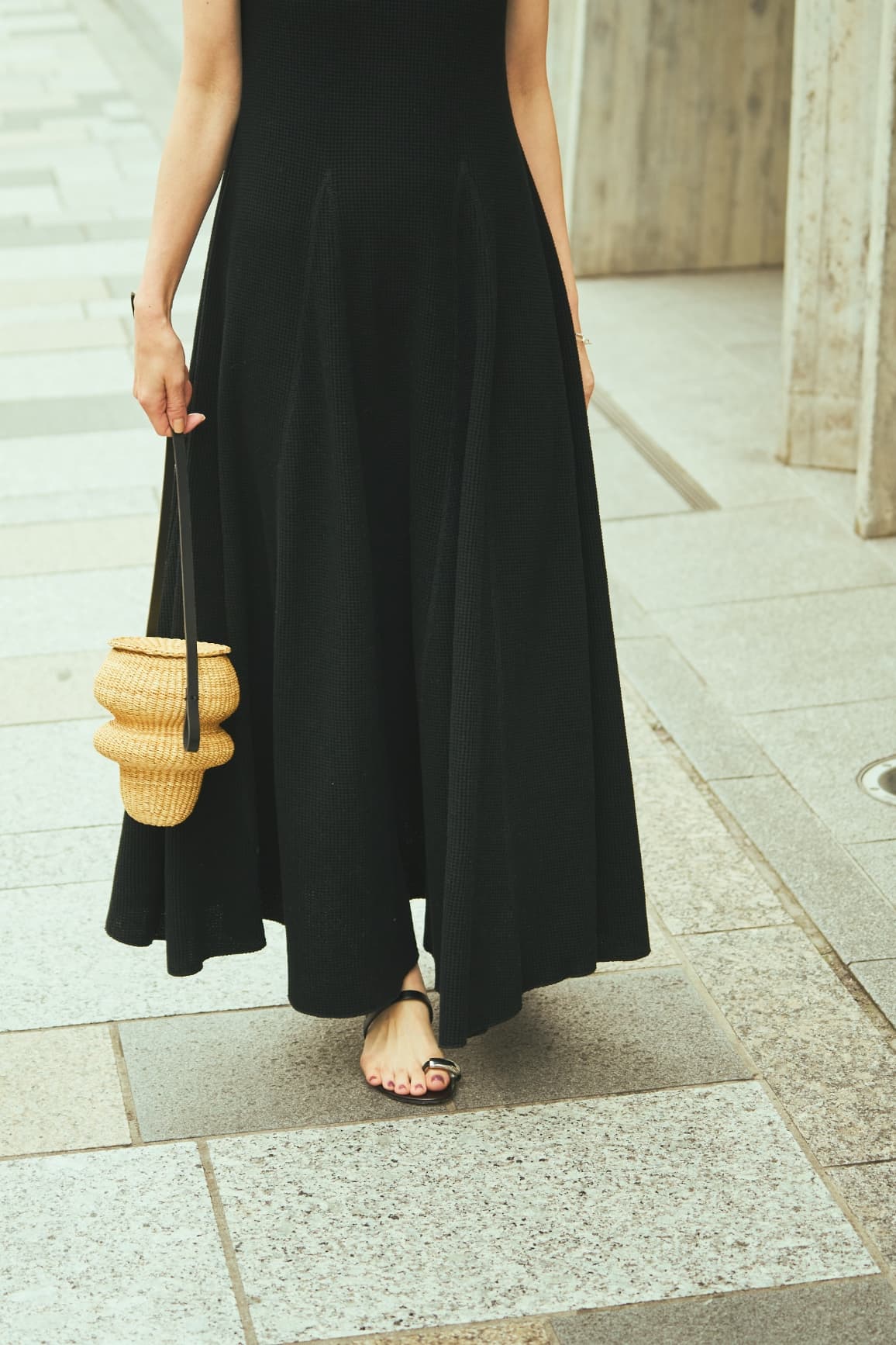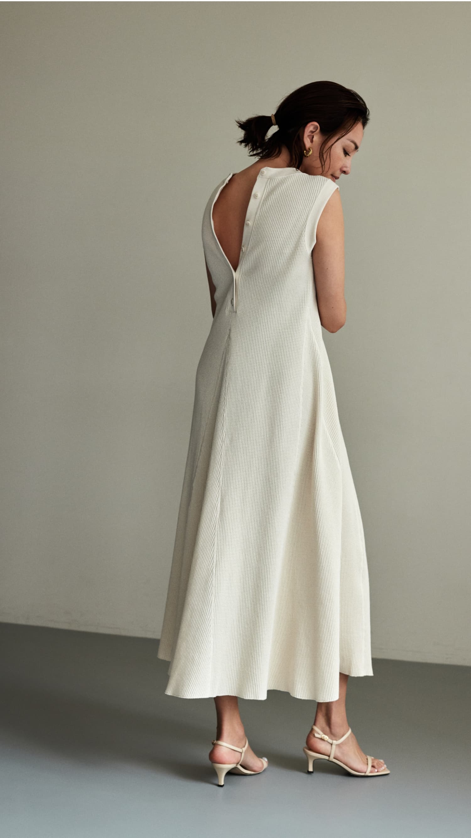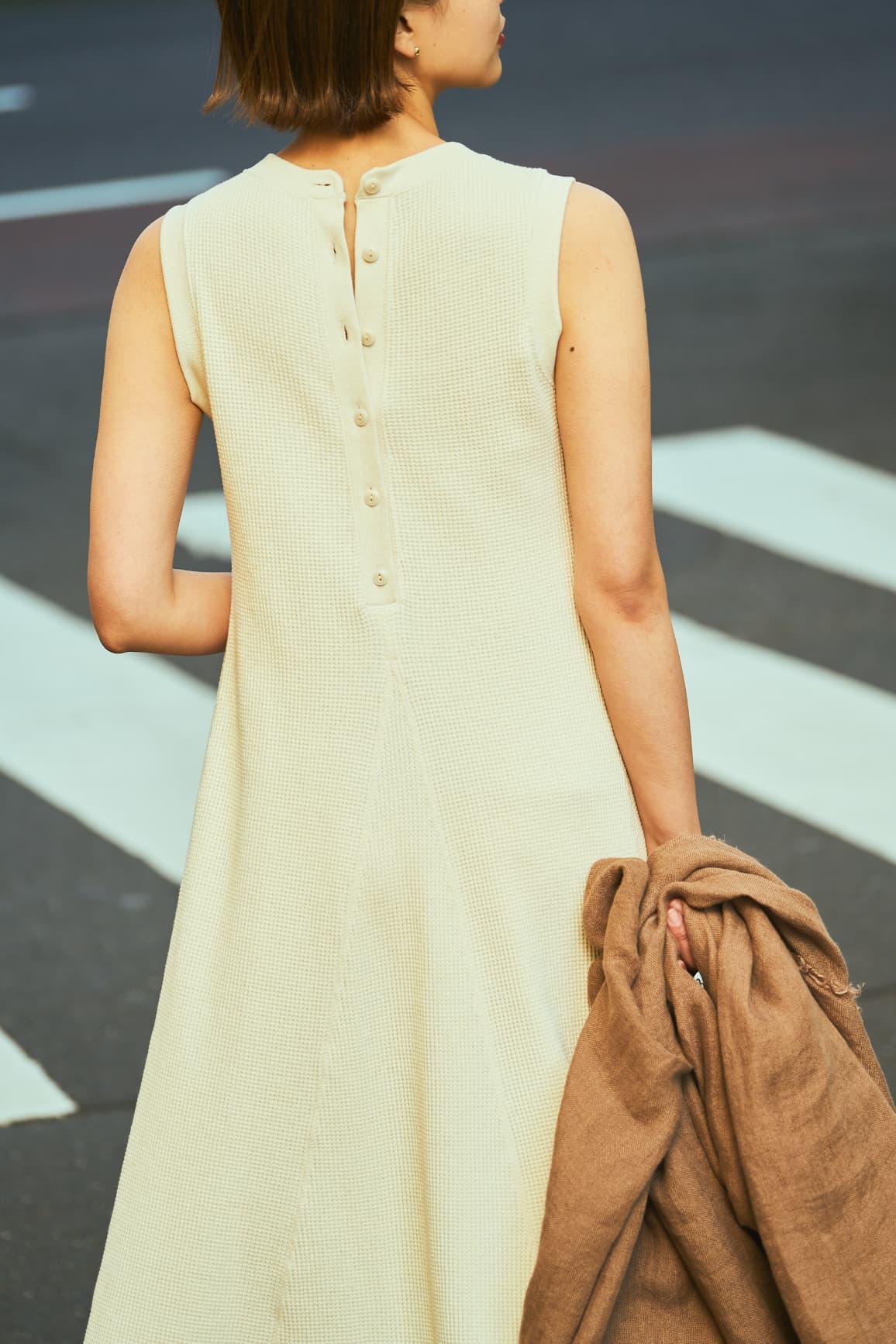 「きれいとおしゃれの両立という、私たちの願望に応えてくれるサーマルワンピース。カジュアルな素材でいて、たっぷりとした分量感が優雅でリッチなムードまで。動くたびに表情がくるくる変わり、チャーミングさも追加。魅力溢れる洋服のパワーを借りるだけ」。