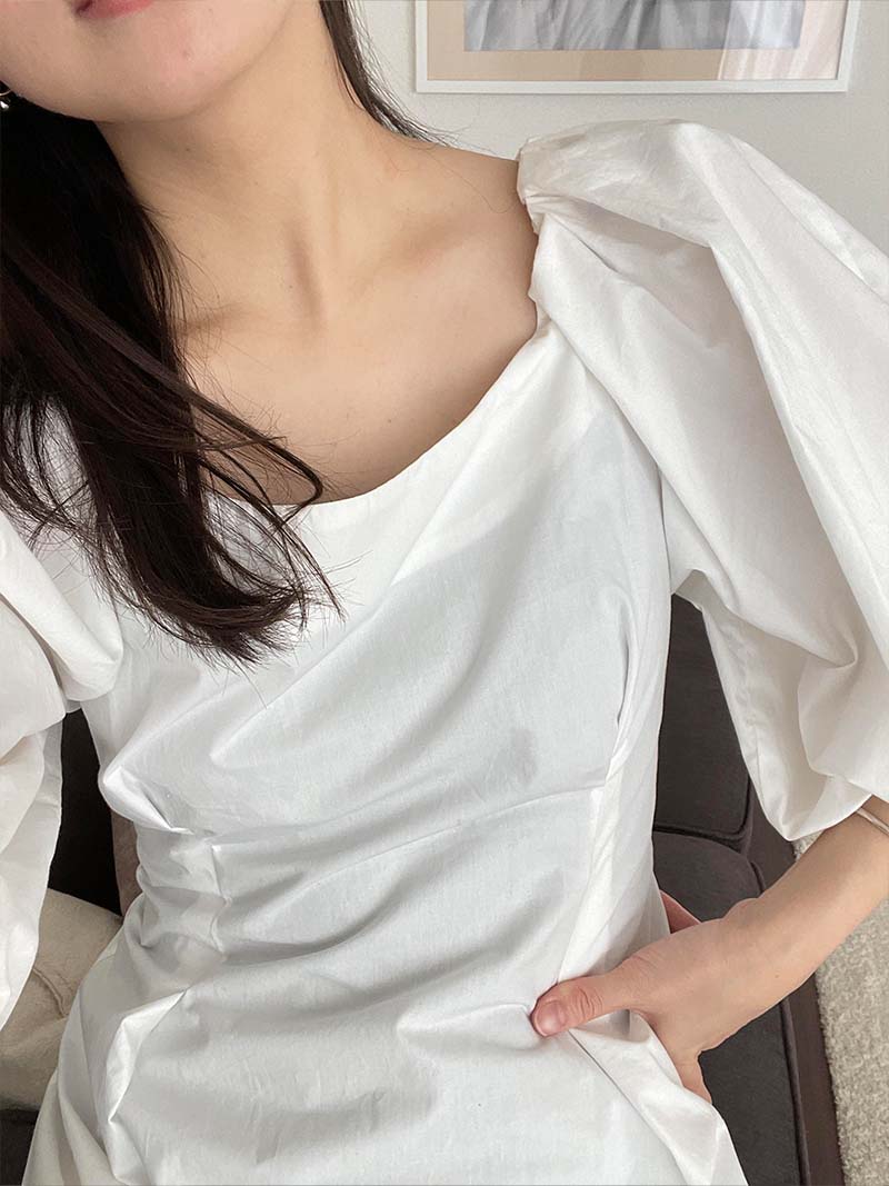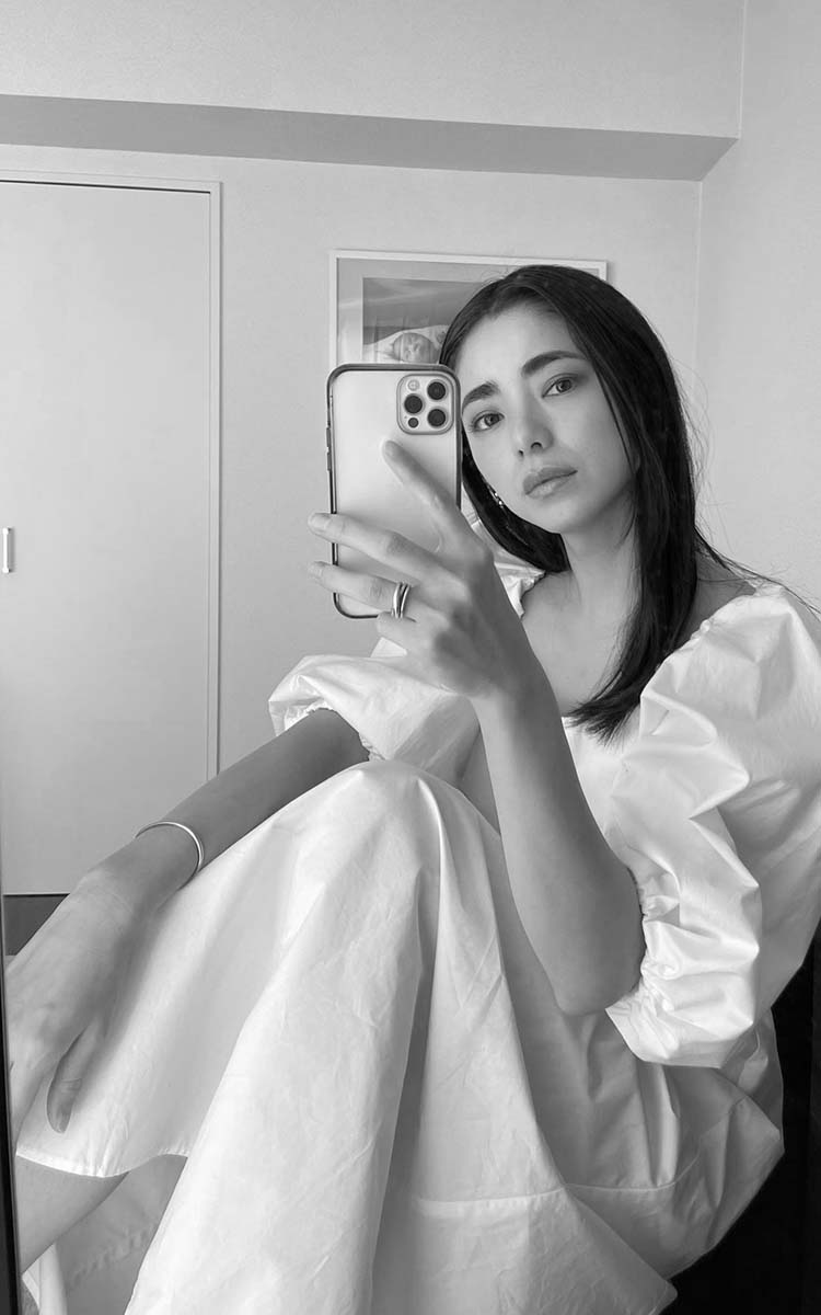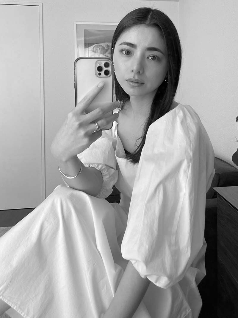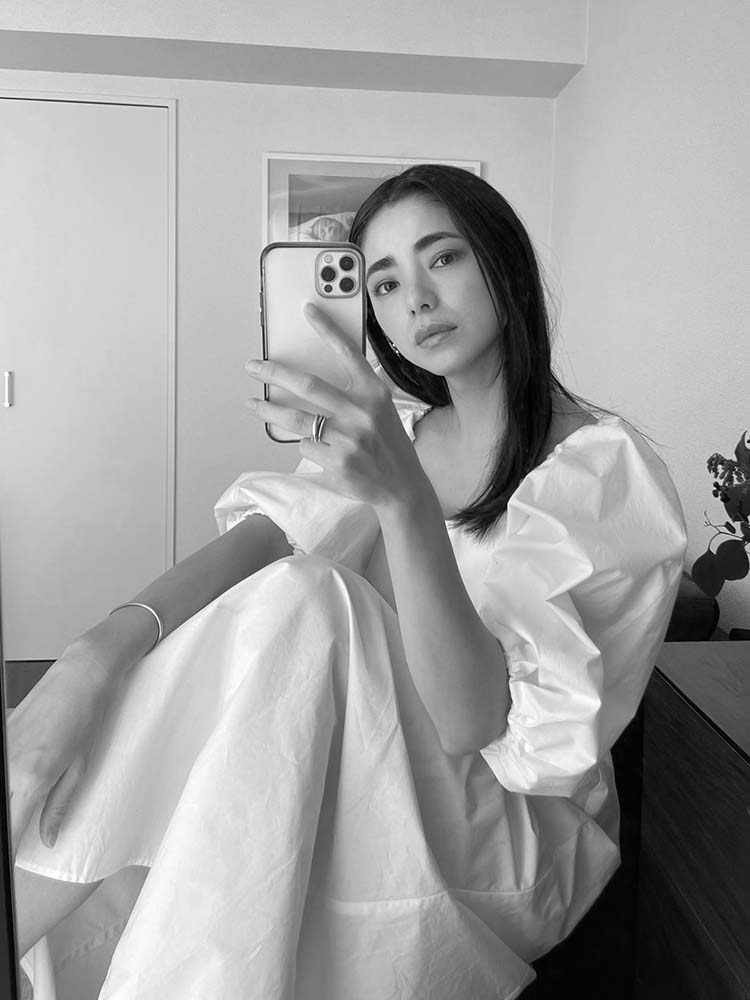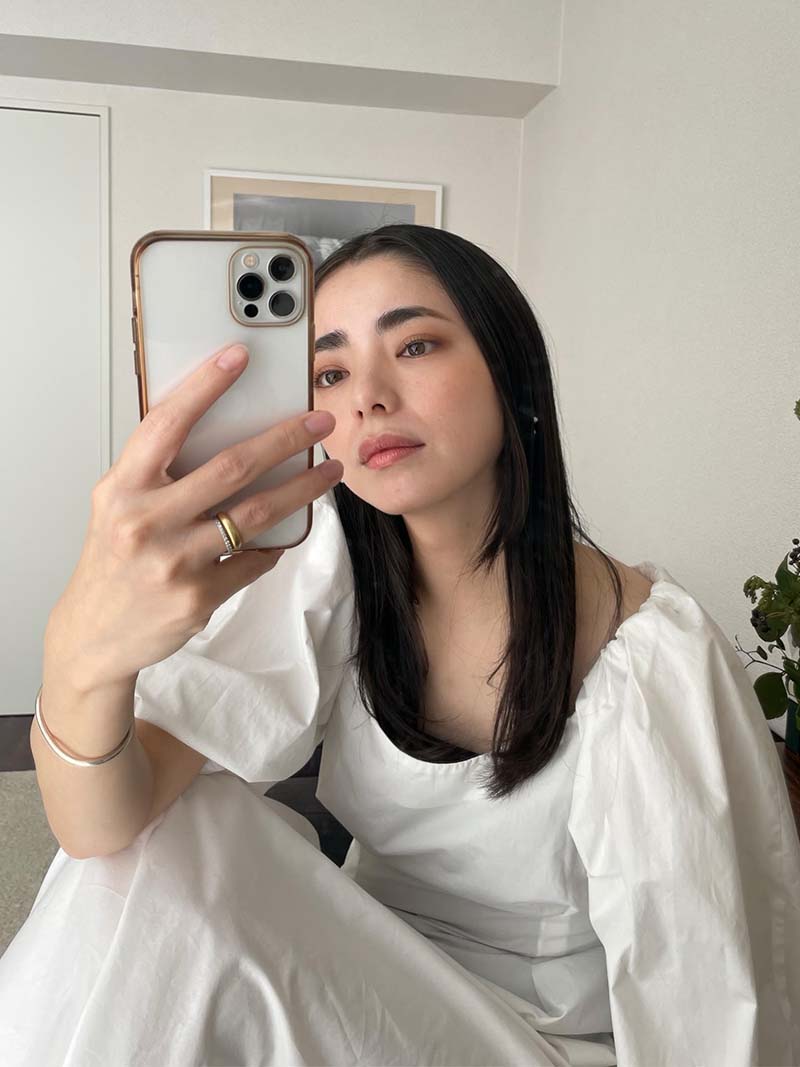 一枚で完成するワンピースには小物もアクセサリーもシンプルに。無駄なものは身に付けず、ワンピースが主役になるようにスタイリング。