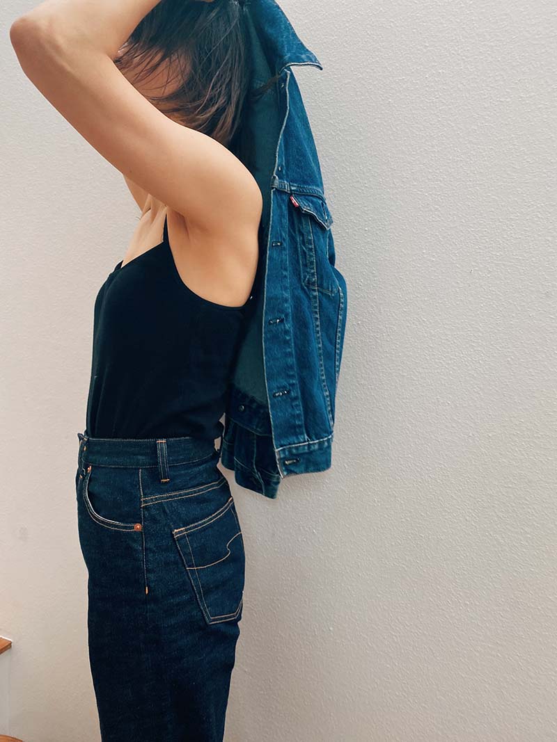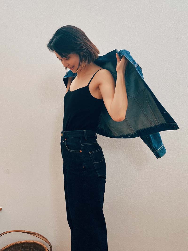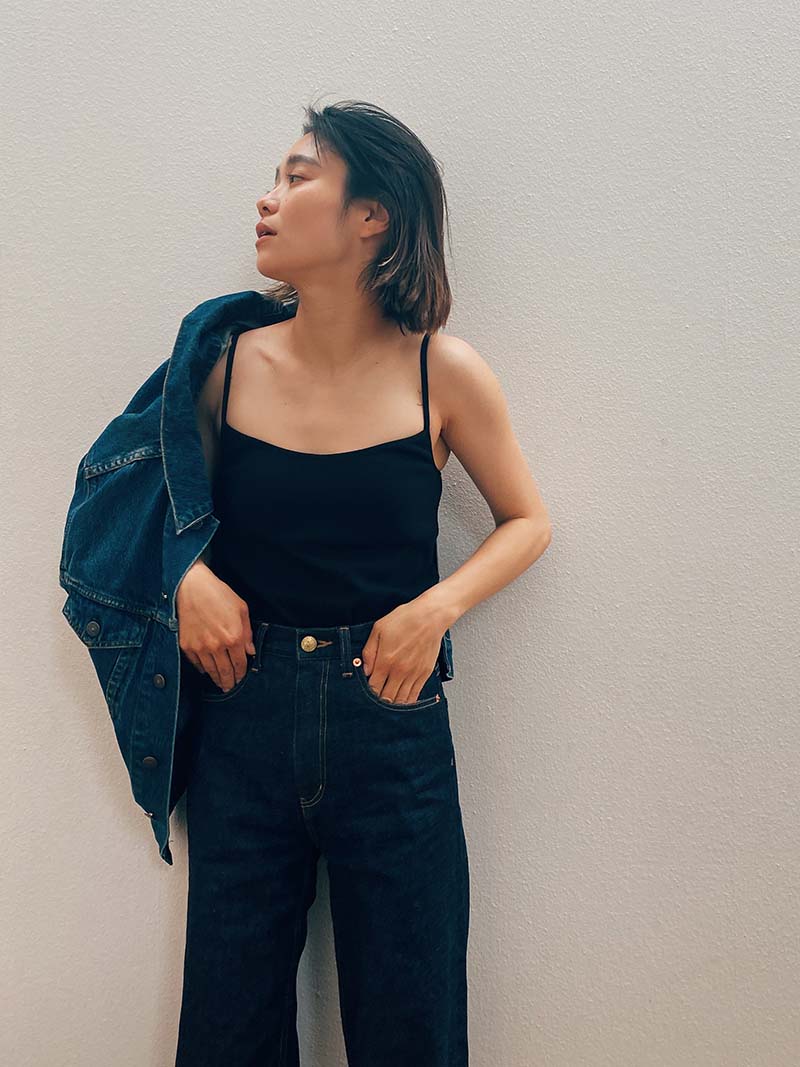 デニムonデニムを引き立たせるために、1枚でもインナーとしても使えるように