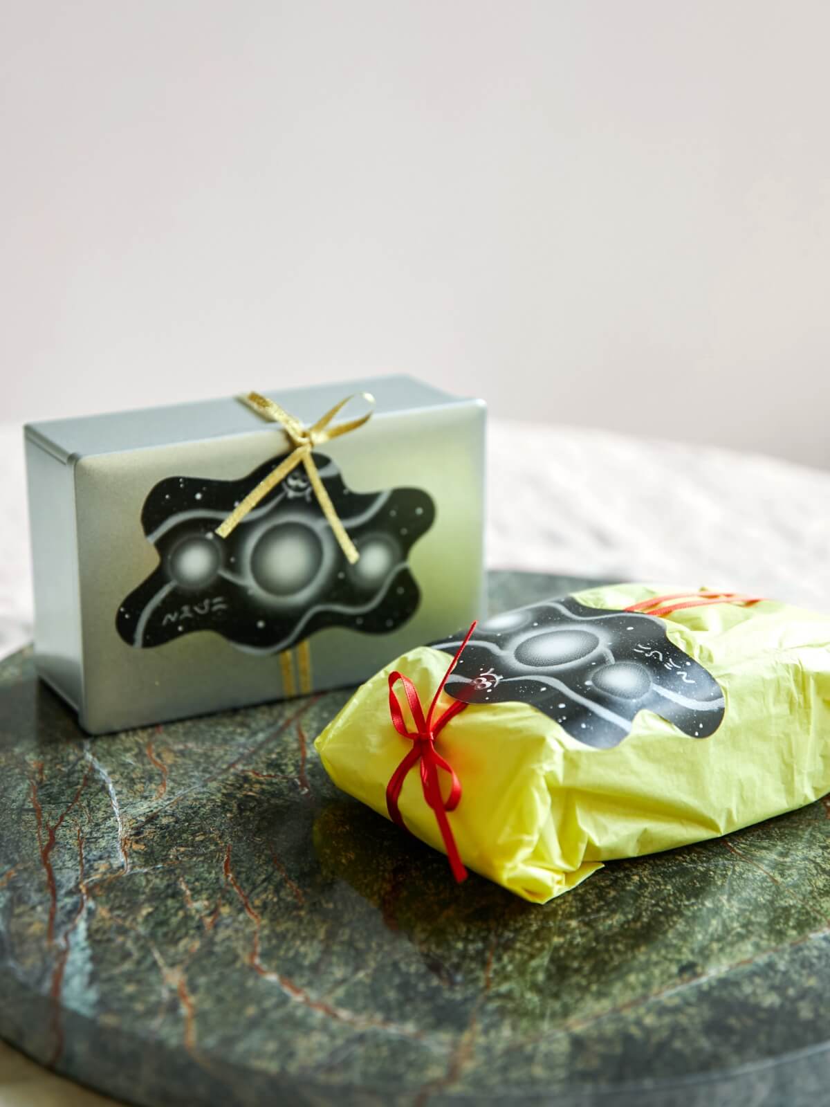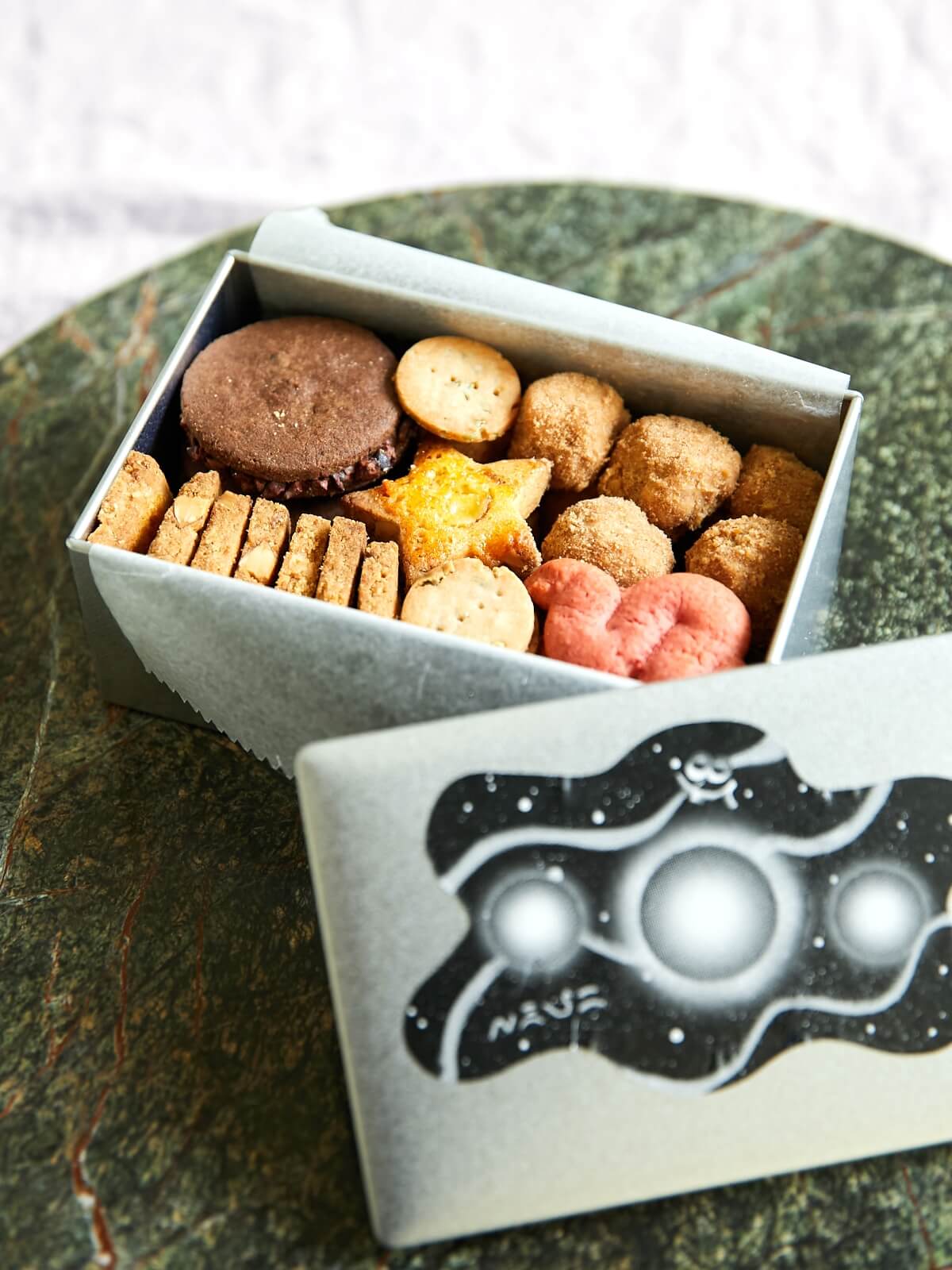 宮崎県出身の店主さんが地元で美術の講師などを務めたのち上京。製菓学校で学び、都内の洋菓子やカフェを経て2022年に独立。“心を無重力に”をテーマに、遊び心を大切にしながら、つくり手も食べ手も軽やかな気持ちになれるお菓子を目指しているそう。好きな生産者さんや地元・宮崎産のものをメインに、可能な限り安心・安全な食材を使用。グルテンフリー(米粉使用)や乳・卵不使用のお菓子も多く、よりたくさんの人に“軽やかに”楽しんでほしいという思いが伝わってきます。スパイスや食材の合わせ方のセンスが抜群で、形や食感もバリエーションがあって楽しいNASAさんのお菓子。今回はCASA限定アイテムが入ったクッキー缶とCASA限定のシュトーレンをおつくりいただきました。イラストレーターのコグレチエコさんによるキャラクター(?)にも注目を!