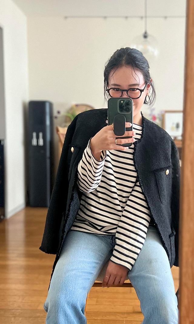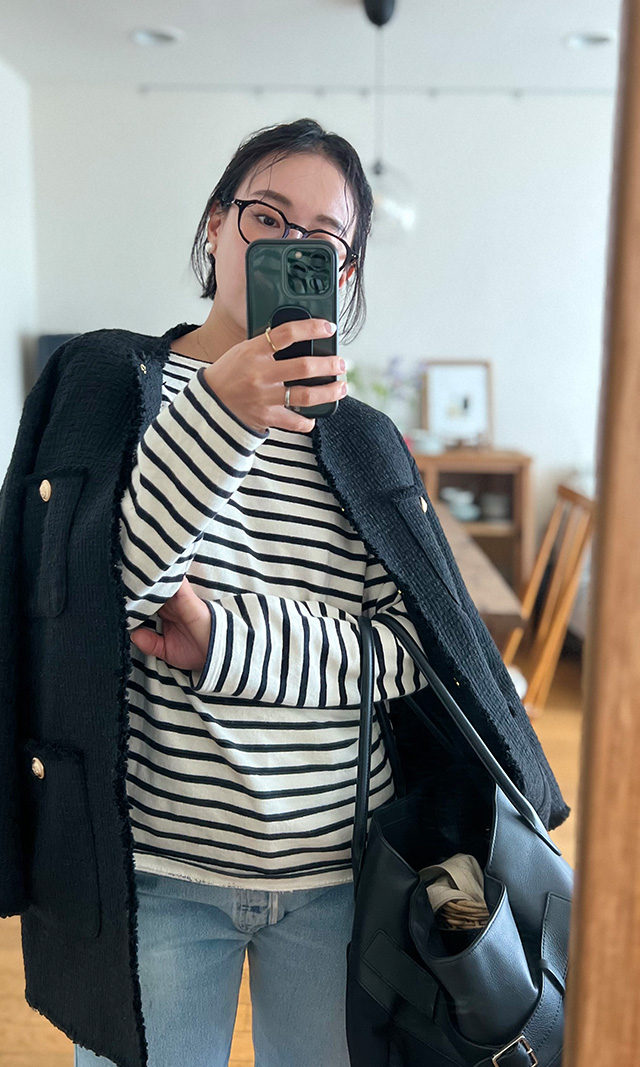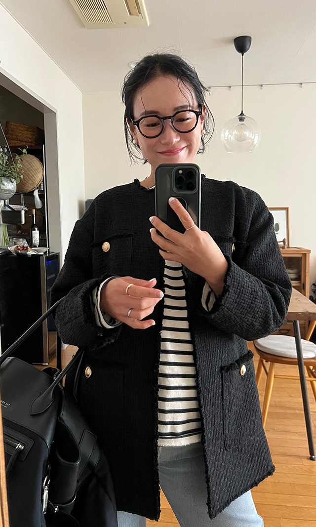 インナーにボーダーとヴィンテージのデニムを合わせて