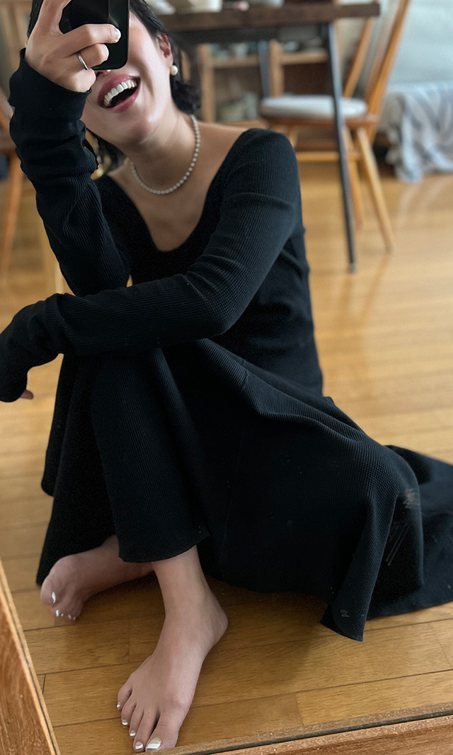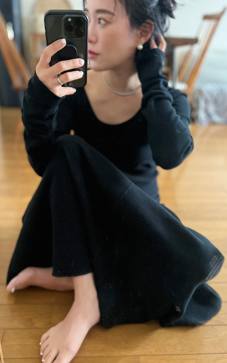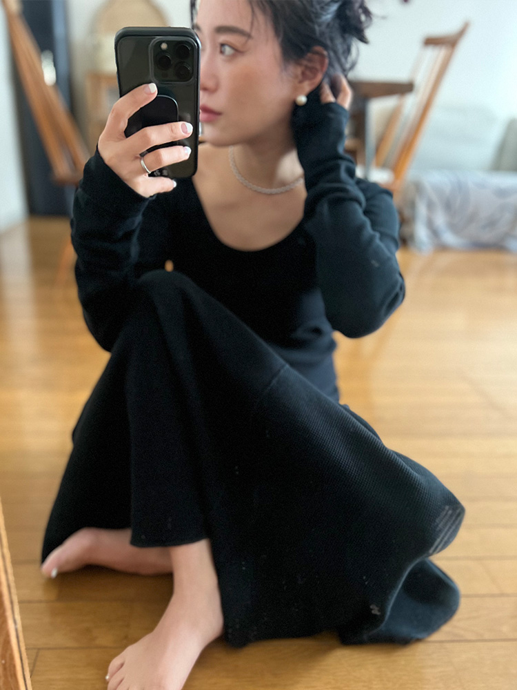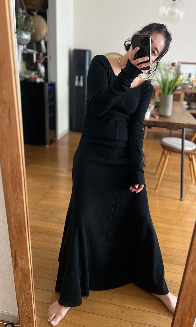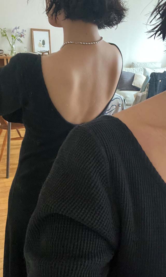 シンプルなんだけど大胆な背中開きで存在感がある為