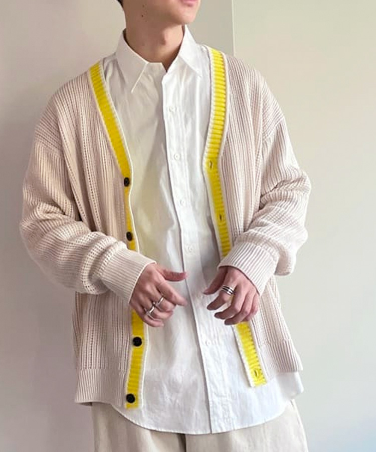 季節らしい抜け感を演出してくれる、メッシュ素材のカーディガン。春から夏までのシーズンごとのコーディネートを徹底解説‼︎シーズン長くオシャレを楽しんで頂ける1着です。カジュアルに合わせやすいバイカラーのデザインで、ユニセックスで着用頂けるゆったりシルエットです。