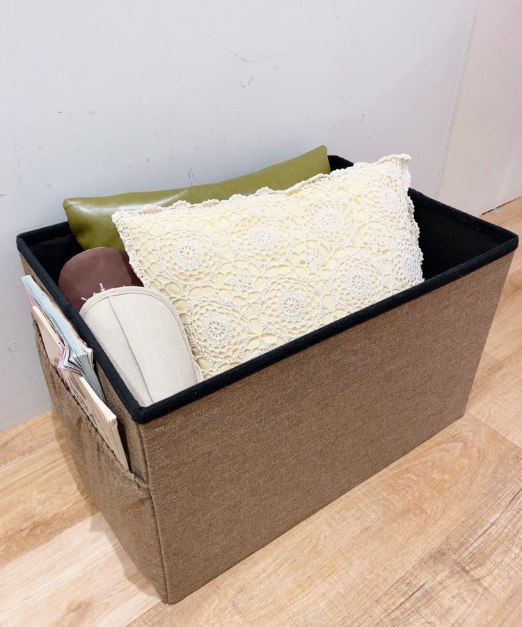 リピート買いされる方も多いサリュの収納スツール。クッション性のあるロングタイプの座面のためゆったりと腰掛けることができたり、中にもたっぷりと収納が出来るため見せる収納としてもおススメ!使用しないときにはコンパクトに折り畳むことも出来るサリュのロングセラーアイテムです。