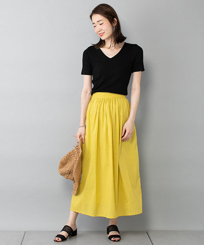 イエローなら元気いっぱいのハッピーなコーディネートに、