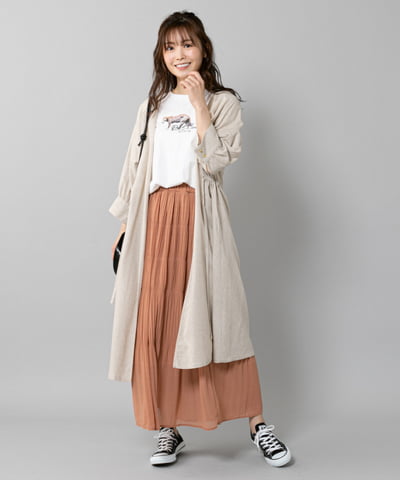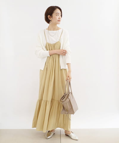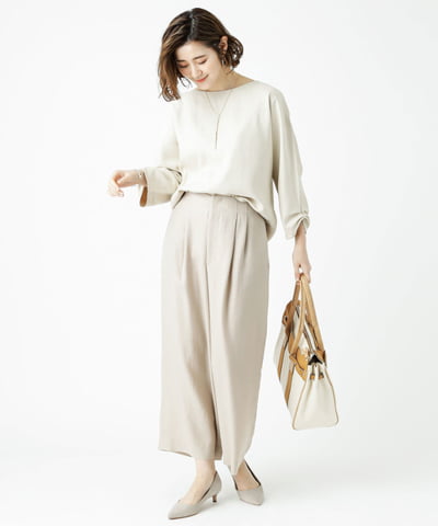 旬な雰囲気を作ってくれます。ワントーンのベージュコーデが品良く今っぽさを作るポイント。