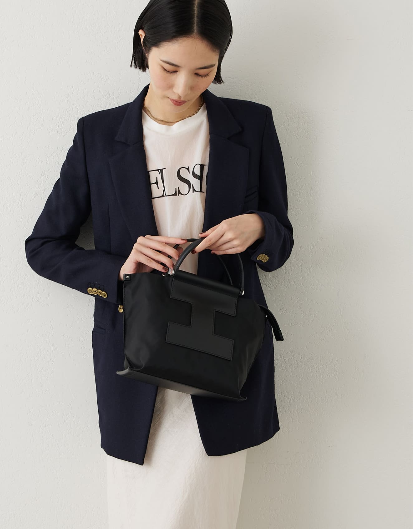 繊維を高密度で編み込んだナイロン素材で、滑らかな手ざわりの良さと、美しい光沢が特徴的な〈LIMONTA〉。創業120年を超える老舗生地メーカー「リモンタ社」が手掛けるリモンタナイロンを使用しています。