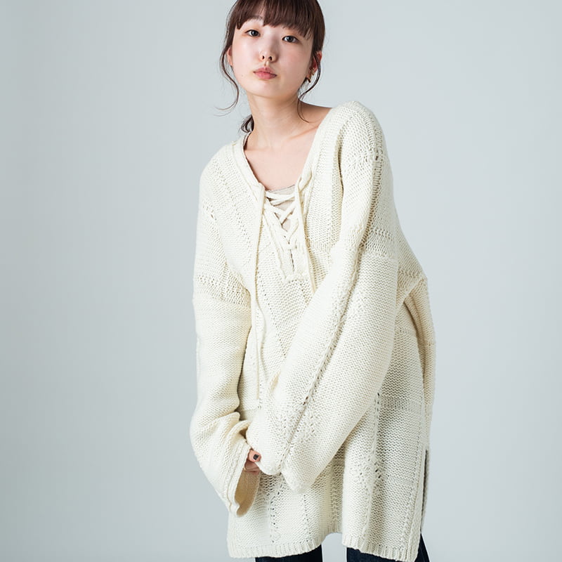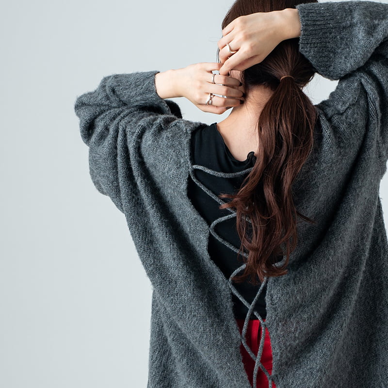 編上げがポイントになり、1枚で満足感。全て前後着用可能な2WAYが嬉しい。