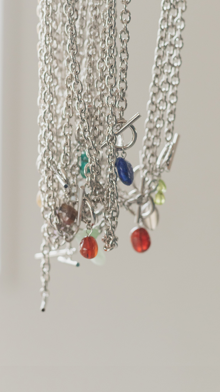 - Birth stone necklace.-