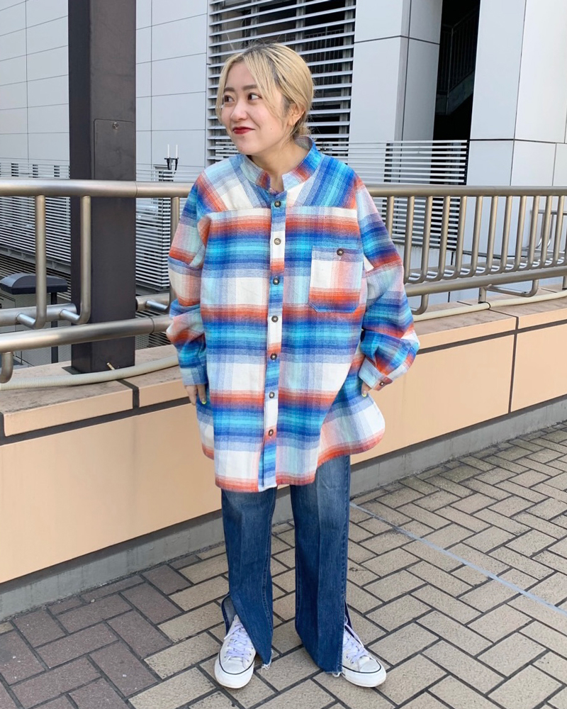 シャツをメインに大好きなとことんカジュアルにデニムとスニーカー合わせにしました!低身長でもオーバーサイズをバランスよく見せるためにボトムはストレートを選んだり髪の毛を括ったりメリハリを付けることをいつも意識します!