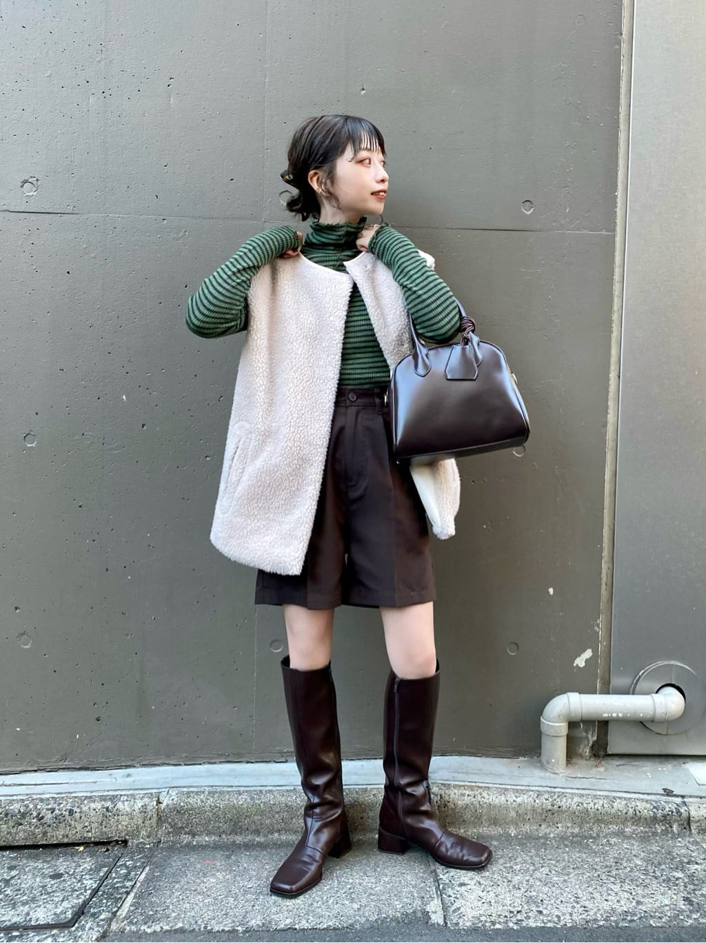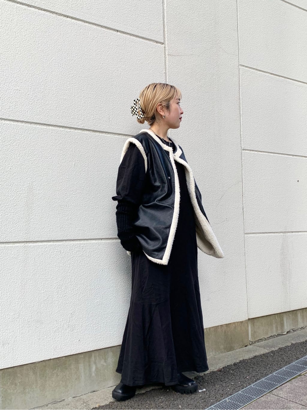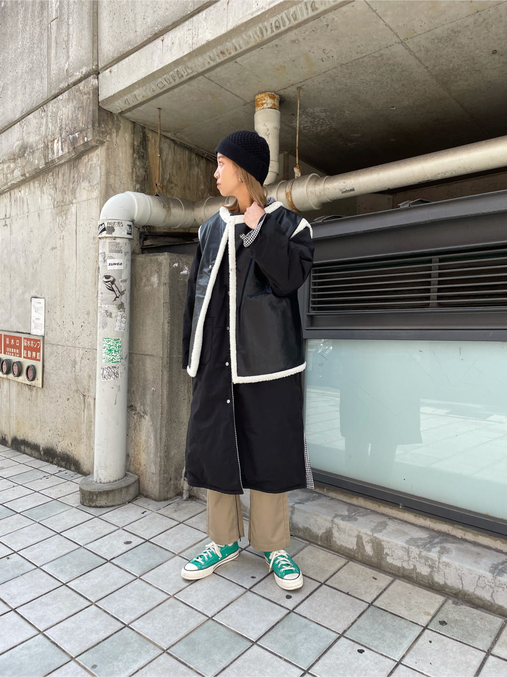 レザーとボアのリバーシブルなので着回し力抜群。甘いスタイリング好きな方はボアがおすすめ