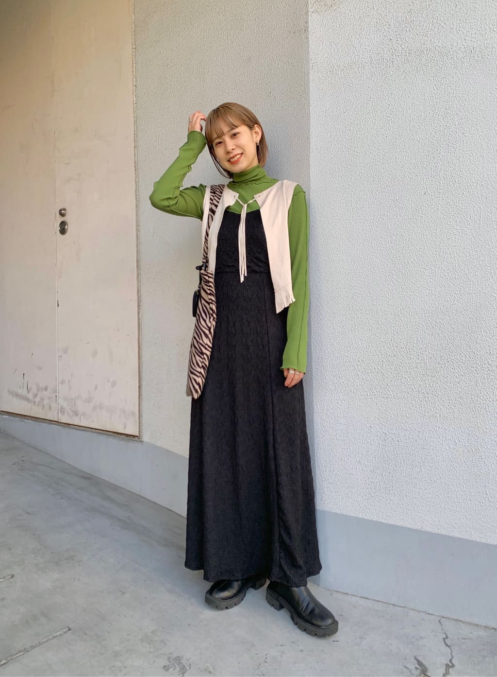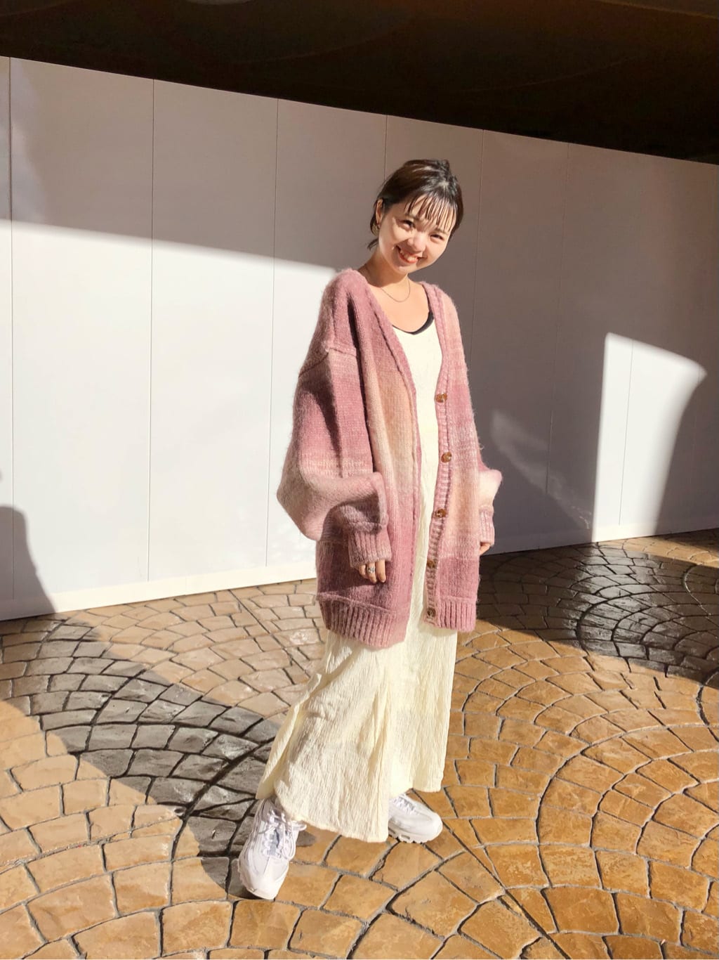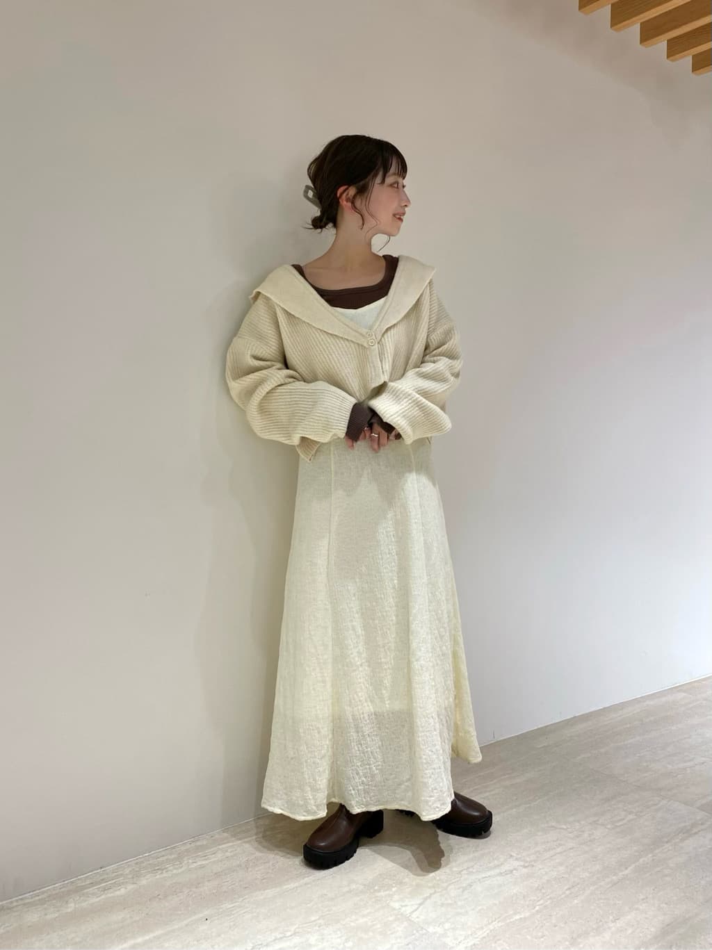 今年はニットカーディガンのインナーにワンピがおすすめ!ごわつきがないシルエットなので冬の着ぶくれ防止にぴったり!