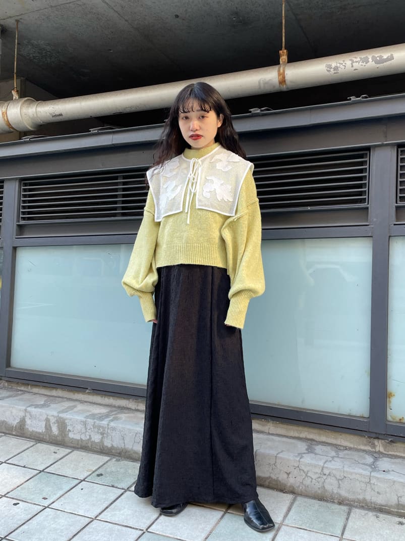 カットだけどティアードが女性らしいデザイン。160センチはサイズ1は足首がしっかり見えて、ヒールブーツを履く方はサイズ2でも◎