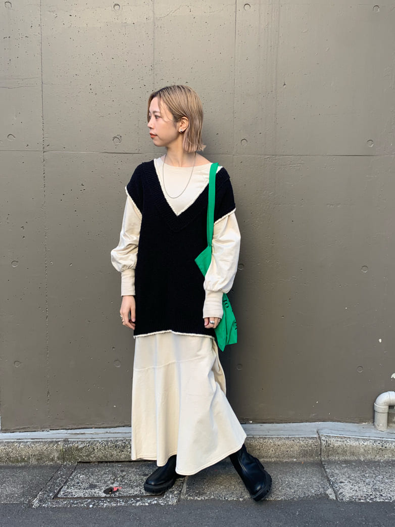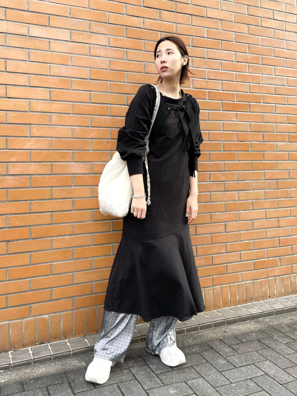 高身長ならでは!?パンツをレイヤードでロングチュニック風にアレンジしました。ゆったりサイズなのでパンツをはいてもごわつきにくいです。