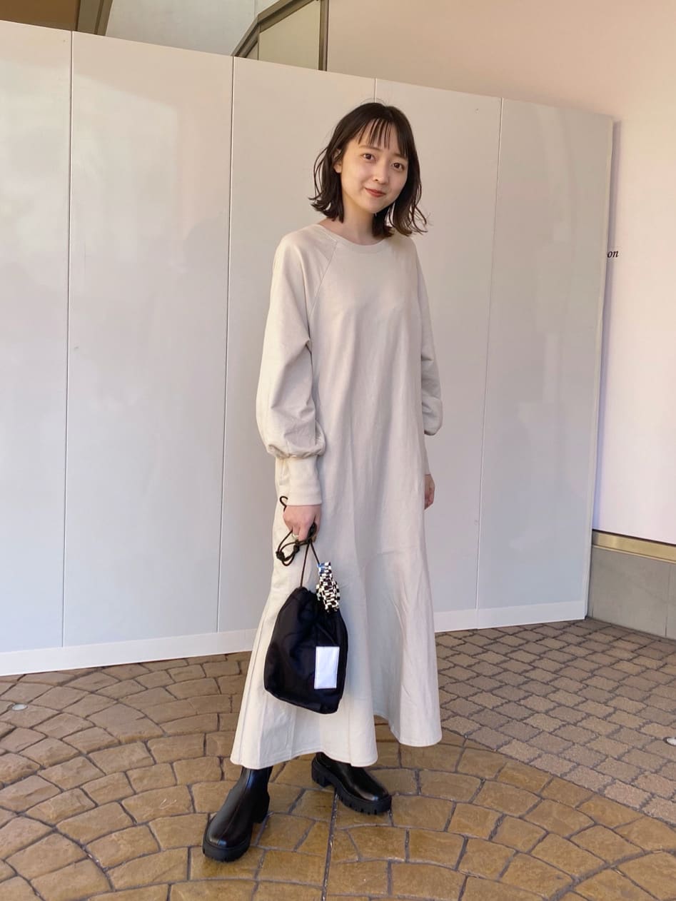 サイズがあるのがうれしい!低身長なのでサイズ1を着用。シンプルなワンピースなので小物で遊べるのが楽しい