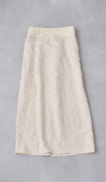 Iラインスカートなので腰回りを隠したいときはベスト合わせのバランスが◎シャギーを裏にしてベーシックにまとめました。