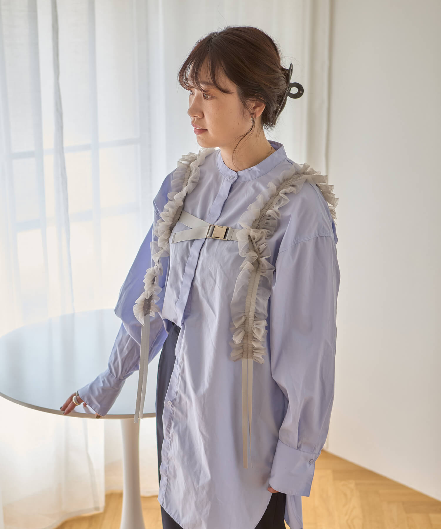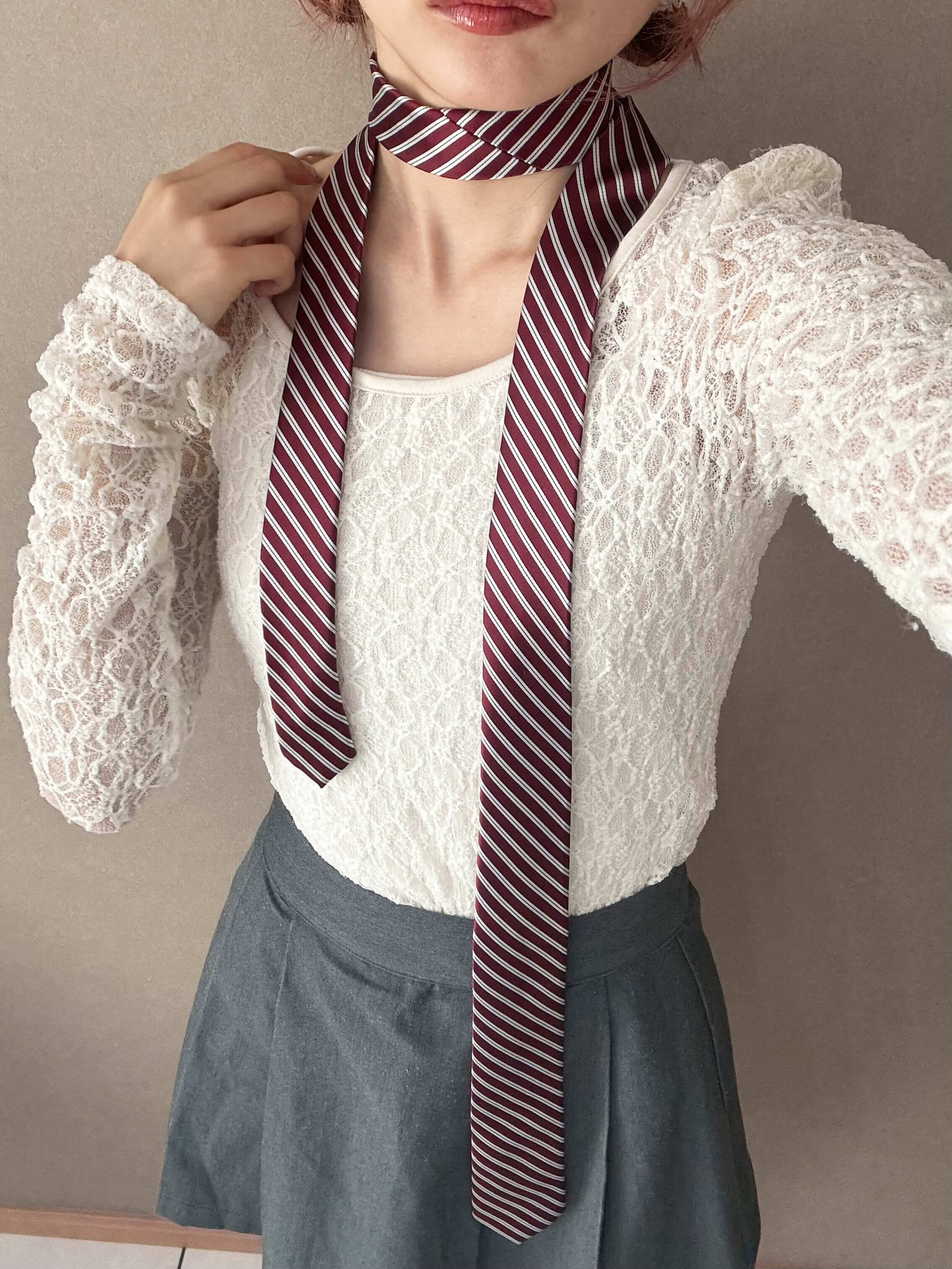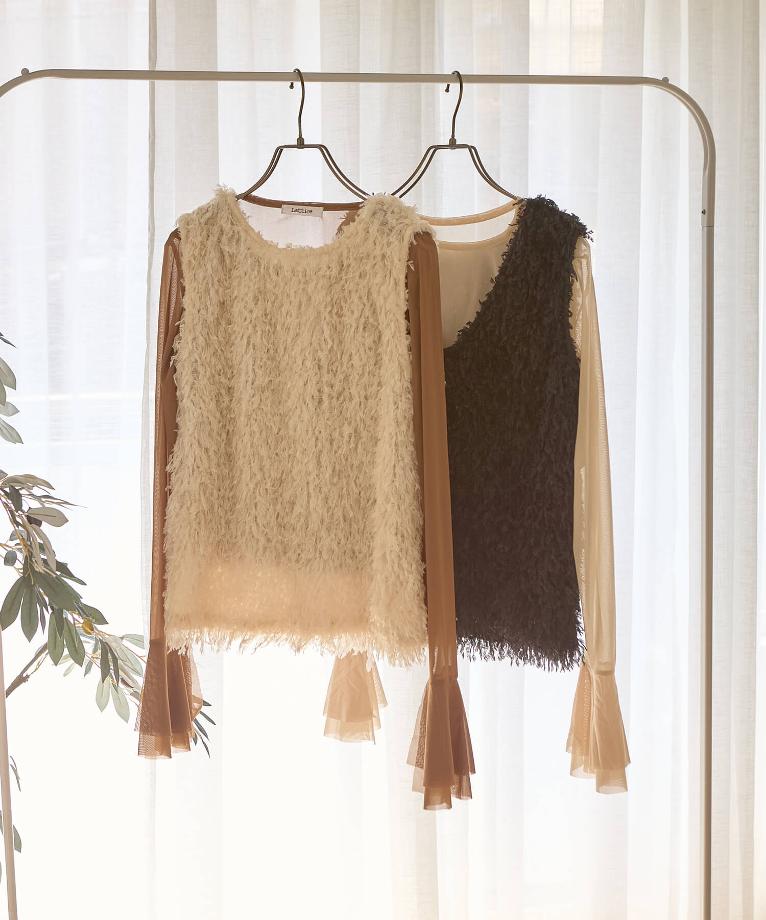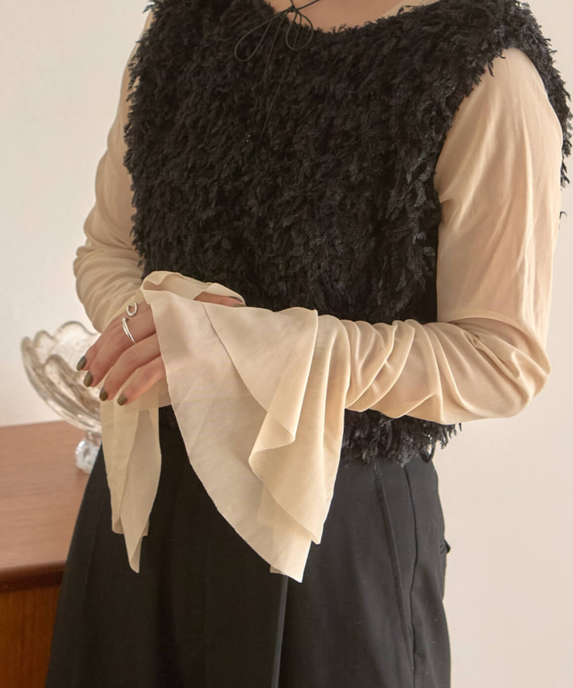 ジャケットやニットの袖からちらりと見えるお袖がコーデのポイントに!