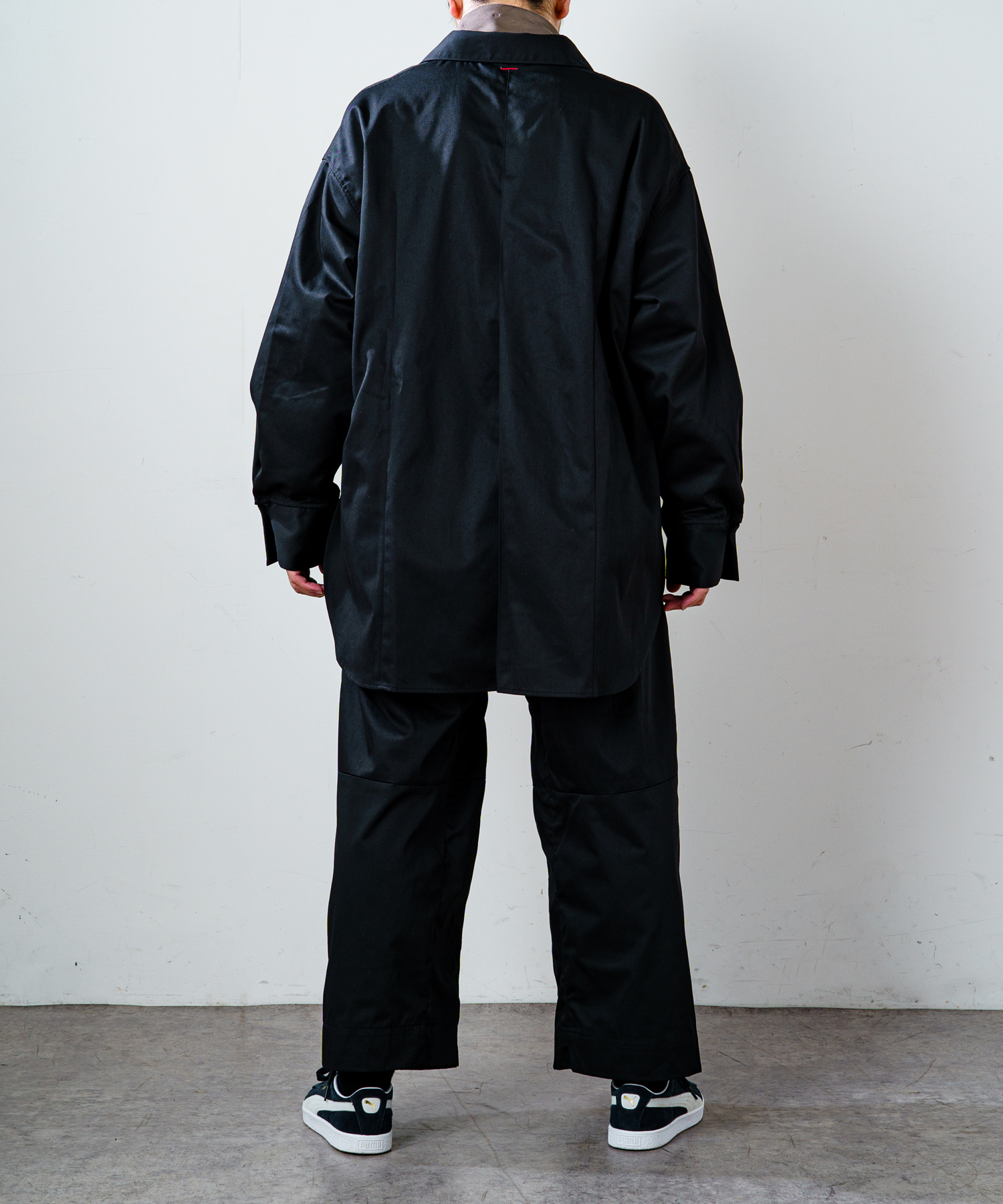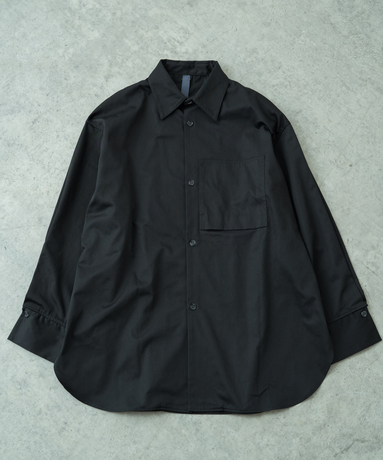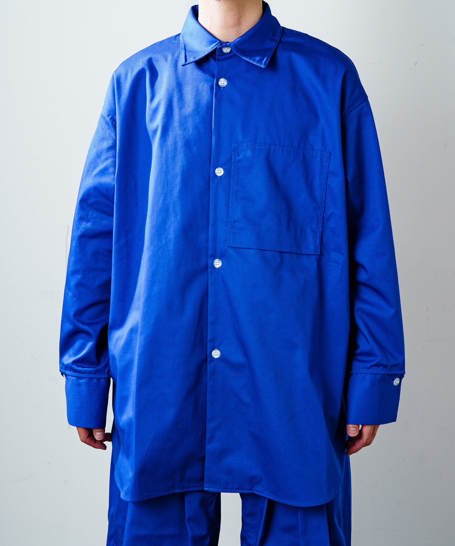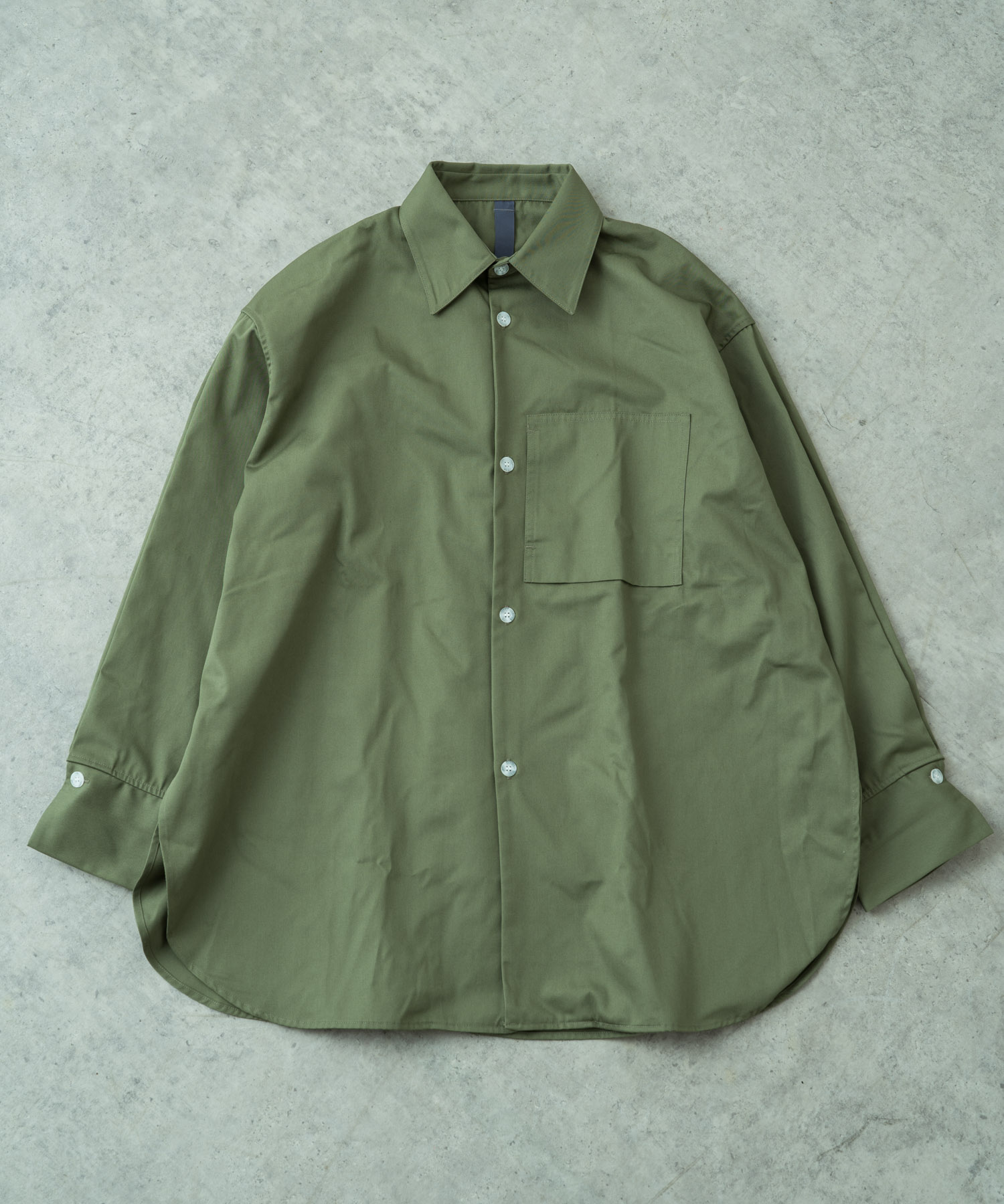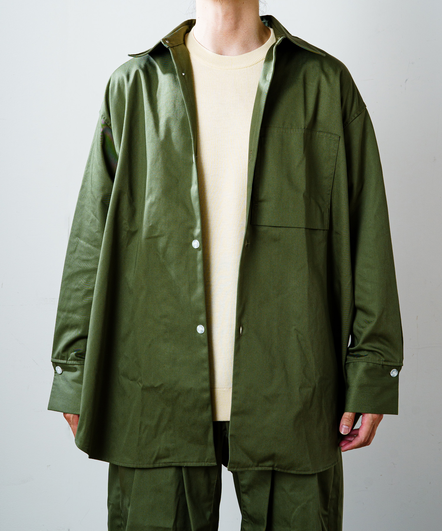 文字通り「彼(彼氏)のシャツ」とも取れるが、「彼(自身)のシャツ」という意味にもなる。つまり誰が着ても良い、定義しすぎないという意味合いを持つ、ややハリのある素材感と程よい肉感が特徴的なビッグシャツ。よく耳にする「ボーイフレンドシャツ」という名にしないのがまた、シンヤコズカらしい。