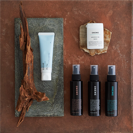 わたしたちは「成分は良質で、絶対に安全なものでなくてはいけない」と考えています。だから「ONEME(ワンム)」は99.8%以上天然由来成分。パラベンなどをはじめとする102種類の旧指定成分はもちろん動物由来原料も一切使用しません。特にメイン成分の柿タンニンは「天王柿」のもの。活性が強い柿タンニンを、純度や安定性の高い状態にまで抽出・精製できたのは、「株式会社トミヤマ」に受け継がれてきた知見と高度な技術があってこそ。それぞれの商品に最適な柿タンニンの濃度を繰り返し研究し、効果をしっかりと検証しました。「一般財団法人ボーケン品質評価機構」にて検査を行うなど、なによりも品質管理を徹底しています。