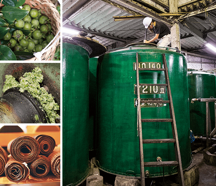 天然素材100%で作られる柿渋は、かつては日本の衣食住全般に活用される必需品でした。