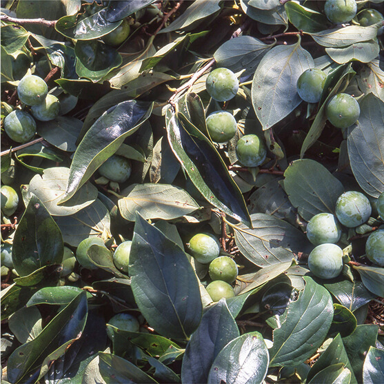 特にタンニン豊富で生命力の高い「天王柿」という品種が多く、良質な柿渋の材料になっていました。小さくかわいらしい実ですが、タンニン含有量はトップクラス。