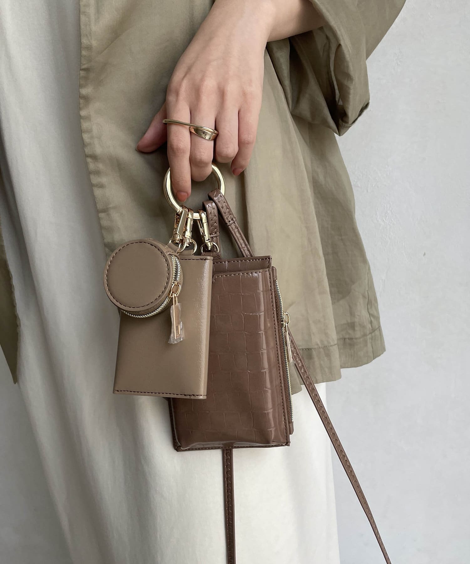 ホワイトのカラーが可愛く、一目惚れでスマホショルダーを初めて購入しました!丸型のポーチには、いつも持ち歩いているリップクリームが丁度入ったので感動しました。薄いポーチには、クレジットカードなどを入れています。持っているだけでおしゃれに見えるので、買ってよかったな〜と思っています◎ホワイトのカラーはどんな服にでも合うのでおすすめです!