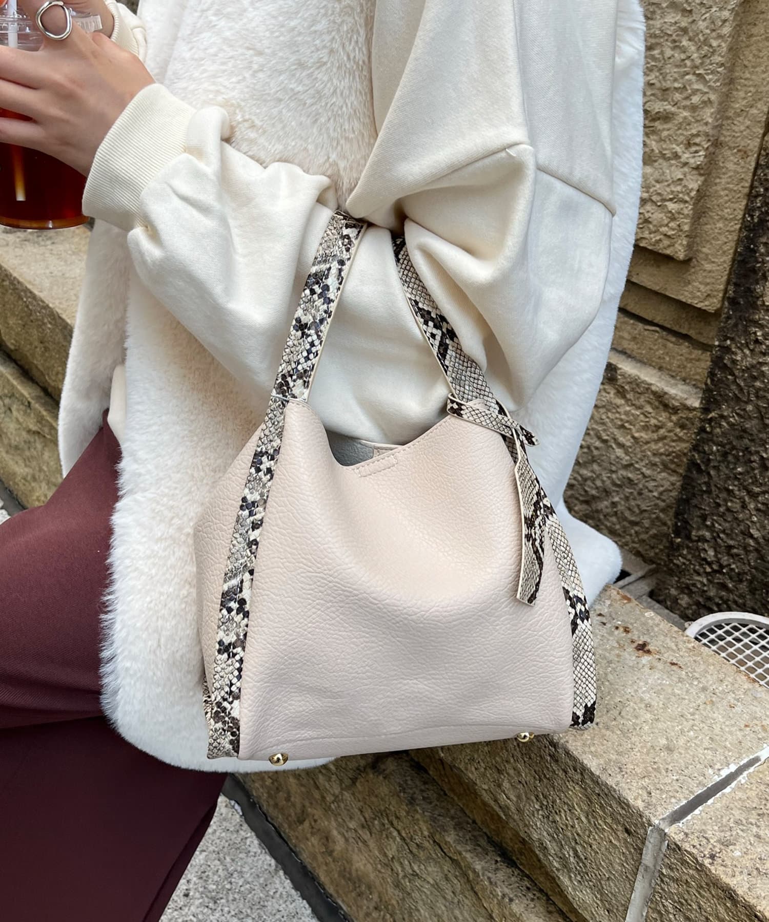 皆さんの書かれてる通りとても生地が柔らかいです。たくさん荷物も入ります。普段シンプルな洋服が多いのでパイソン柄がアクセントになっていいです。たくさん使えそうです。