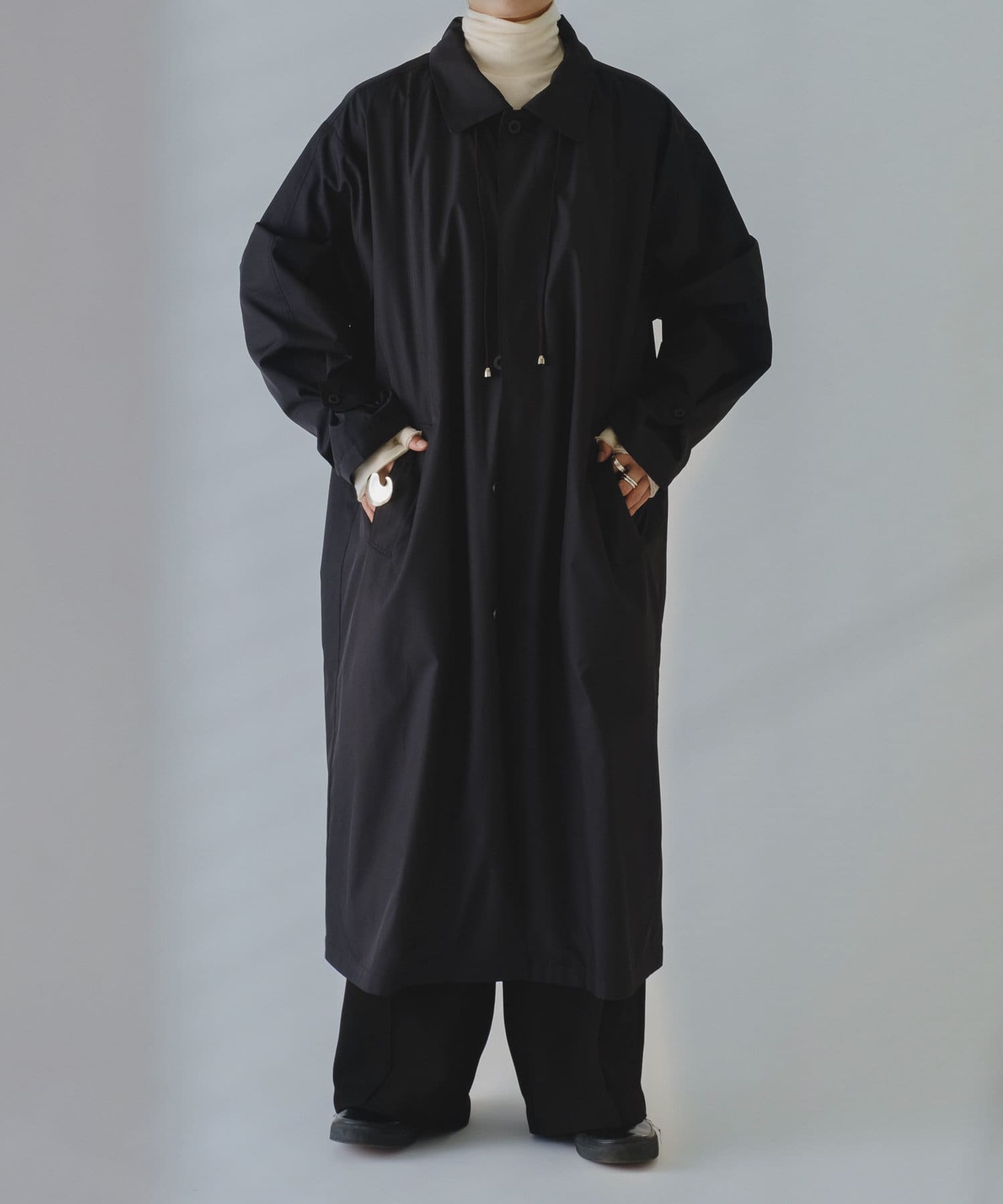 普段、黒は選ばないのですが、水玉が可愛いと思って購入しました。サイズは0でもとても長いのですが、スタッフコーディネイトで身長が同じ具来の方のお写真を見てサイズを決めました。タートルをINしたり、カーディガン等を羽織ってからコートを着てもいいなと思っています。ワンピース自体は薄地ですが、お色で真冬以外は着たいです。自宅で洗えるのも個人的には重要です。
