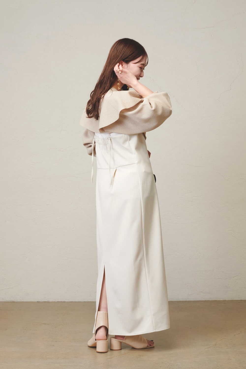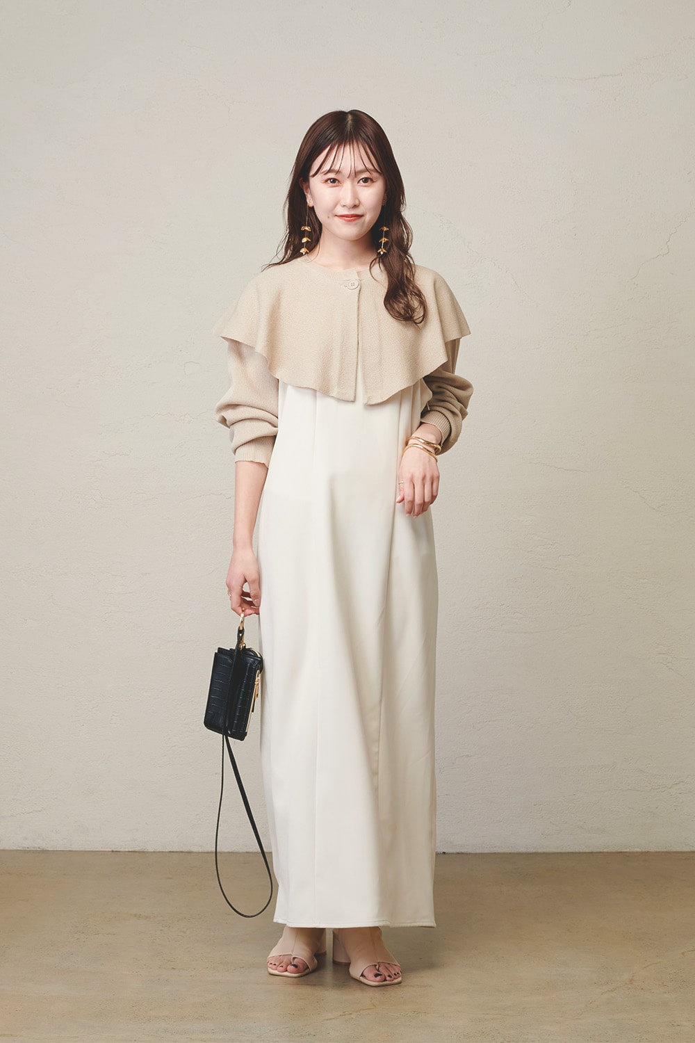 ” Real buy coordinate簡単にお洒落レイヤードスタイルが叶う、春カラーのワンピースが主役!身長が高くないのでクロップド丈のカーディガンでスタイルよく見せているところもポイントです。