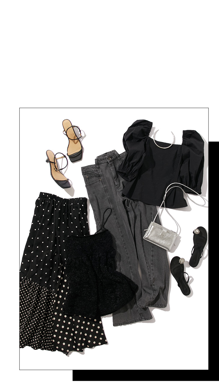 どんな色とも組み合わせやすい万能カラーの“黒”。