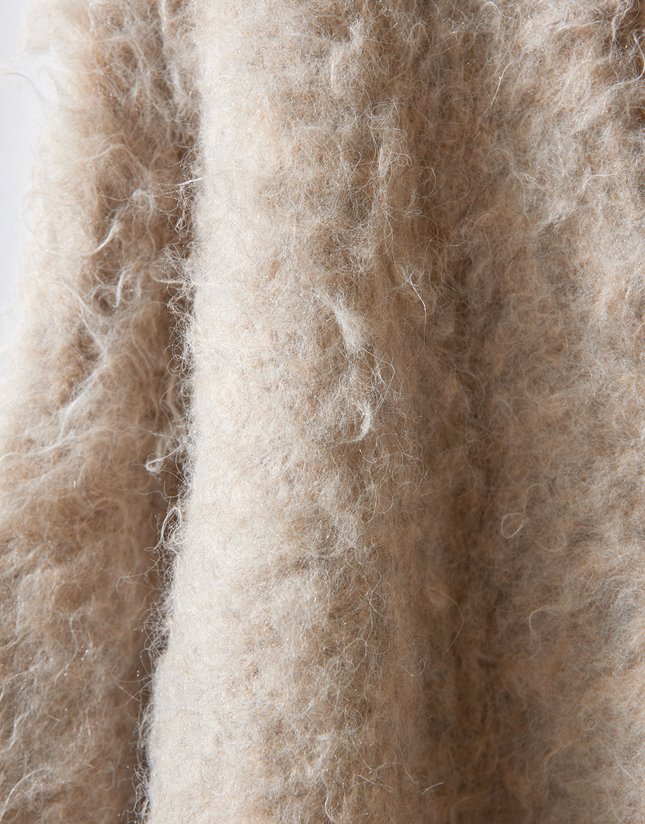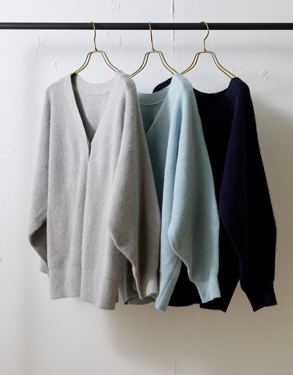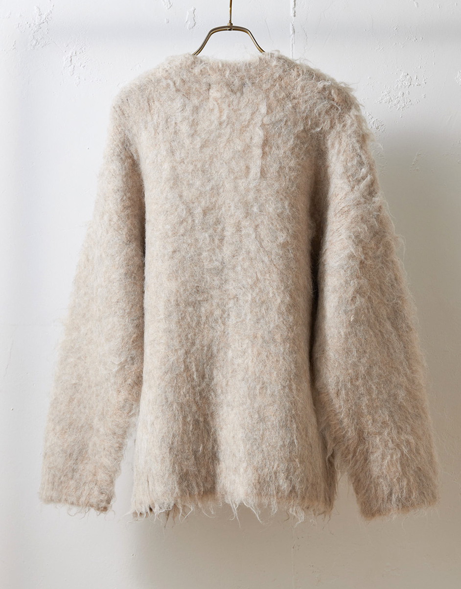 ふわっとした毛足の長い高級糸にラメ糸をMIXしたトレンド感漂うカーディガン。とろみのある柔らかなタッチ、ゆるっと女性らしいフォルム、デコルテをキレイにみせてくれるVネックラインは体型・骨格問わず、着る人の「女性らしさ」を引き出してくれる、とっておきの一着です。