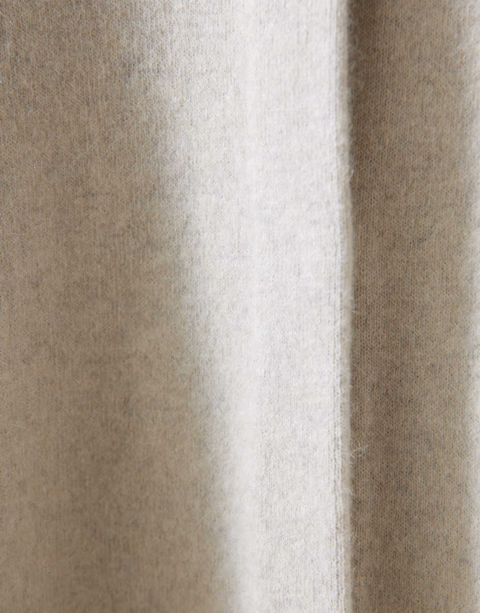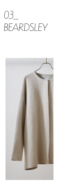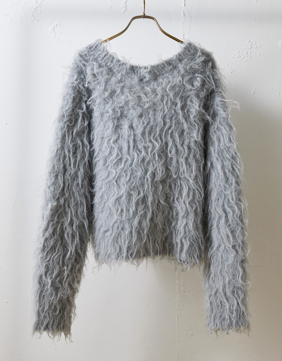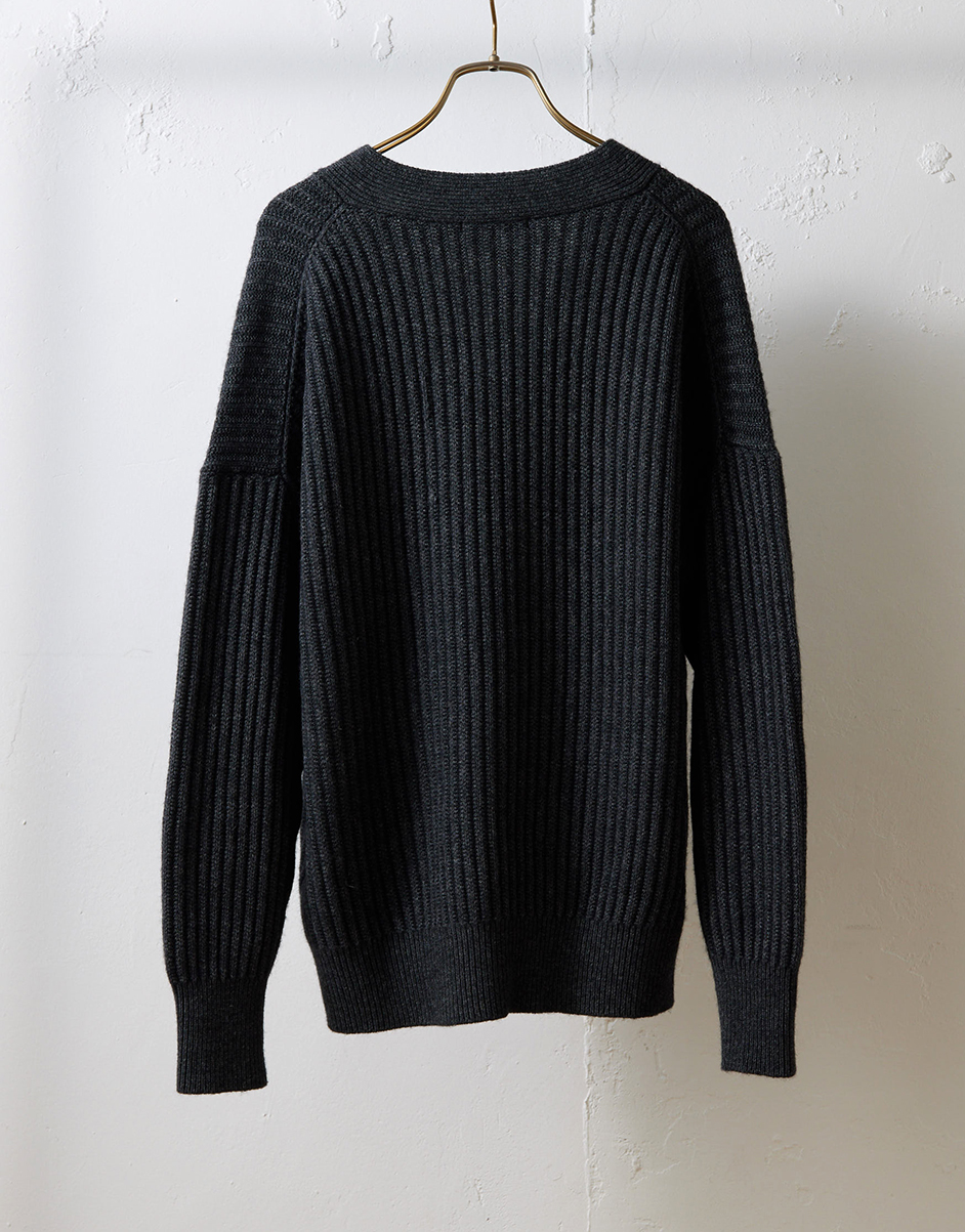 ふんわりとした素材を、表情感のある片畔編みで仕上げました。真冬まで着られる暖かさと、着心地の良い軽さがうれしい一枚です。