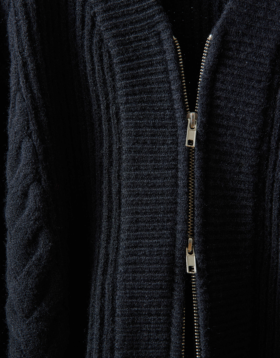 肉厚な生地感で、センターのZIPは2つのスライダーがあり様々な着こなしができます。