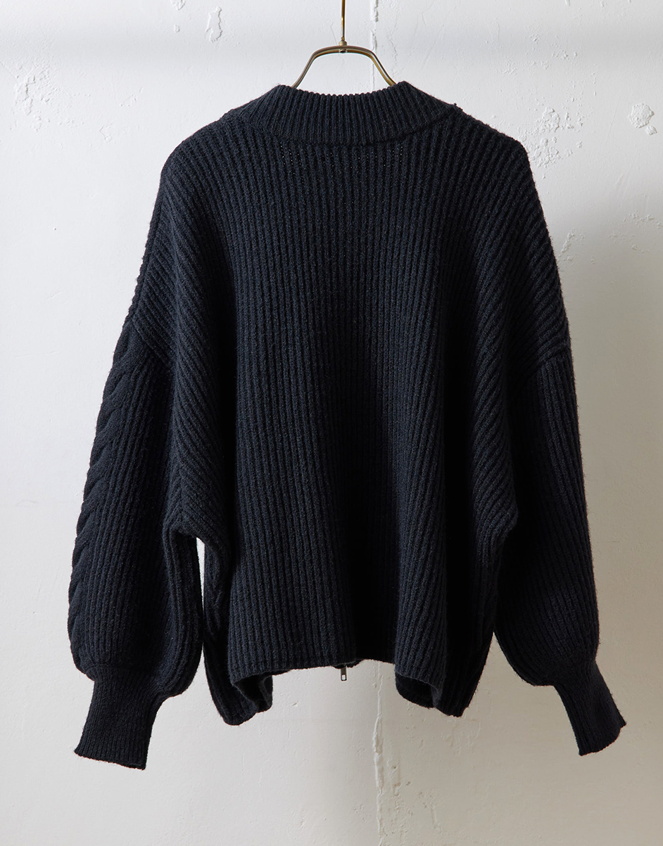 リラックスムードを醸し出してくれるゆったりとしたシルエットが心地よく、羽織りとしてはもちろん、逆開ファスナーを閉めてプルオーバーのように着ても、下をすこし開けてインナーを見せるコーディネートをしても素敵な一着です。
