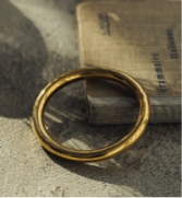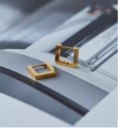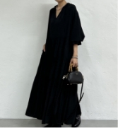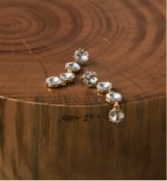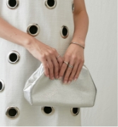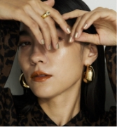 カジュアルにもフォーマルにも合わせられるサテン素材のワンピースを中心に、ゴールドの小物使いでまとめました。耳元に華やかなビジューのピアスを合わせ、いつもよりゴージャスな印象に仕上げています。