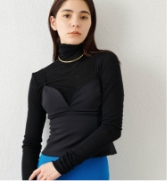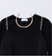 An adult style featuring a chain strap cami dress that looks great on its own. The lustrous knit innerwear features elegant bell sleeves. The sharp neck cuff adds a sophisticated formal feel.