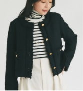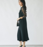 A gorgeous dress that is sure to enhance your feminine power, using a sheer material with a dot pattern. Matching tweed jackets are this year’s trend. The cropped length makes it a recommended coordination that is easy to balance for people of all heights. Even when you open the front of the jacket, the sheer feel of the neck is elegant and wonderful!