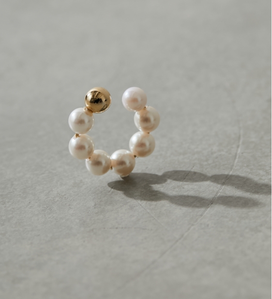 全体にパールをあしらったイヤーカフ。ミニマムながら華やかな印象をプラスしてくれます。