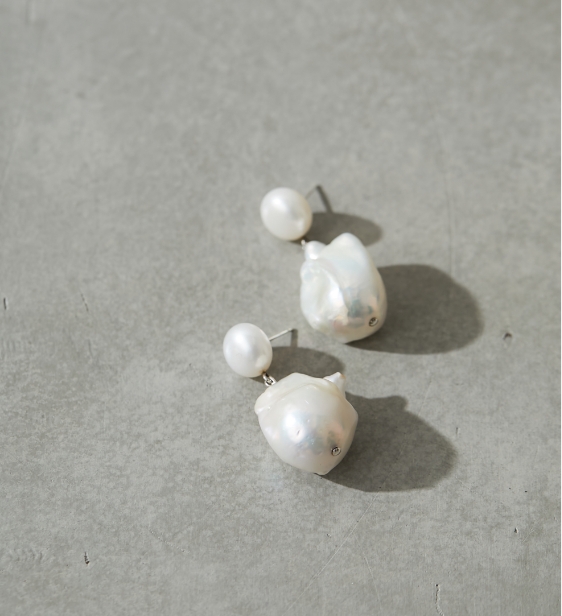 存在感のあるバロックパールが、センスの良さを演出してくれるピアス。