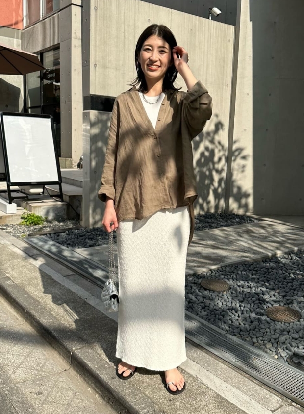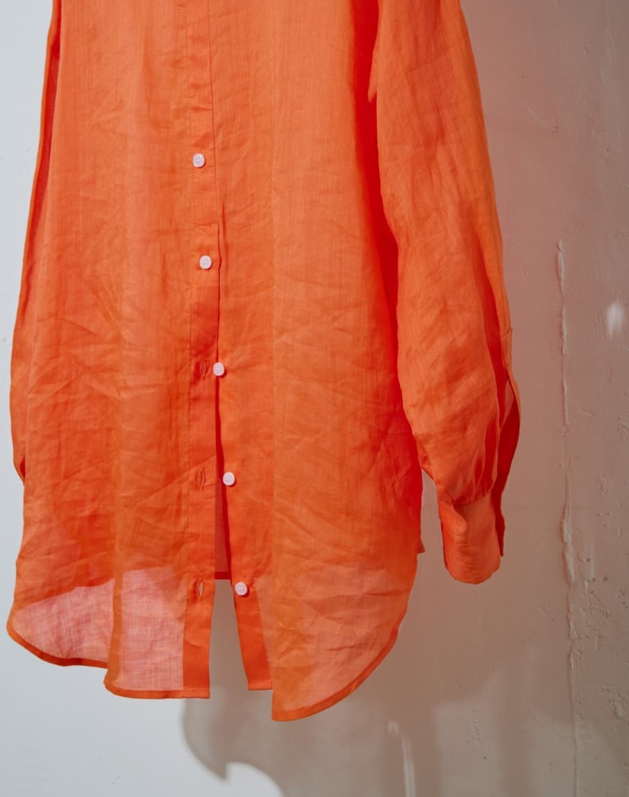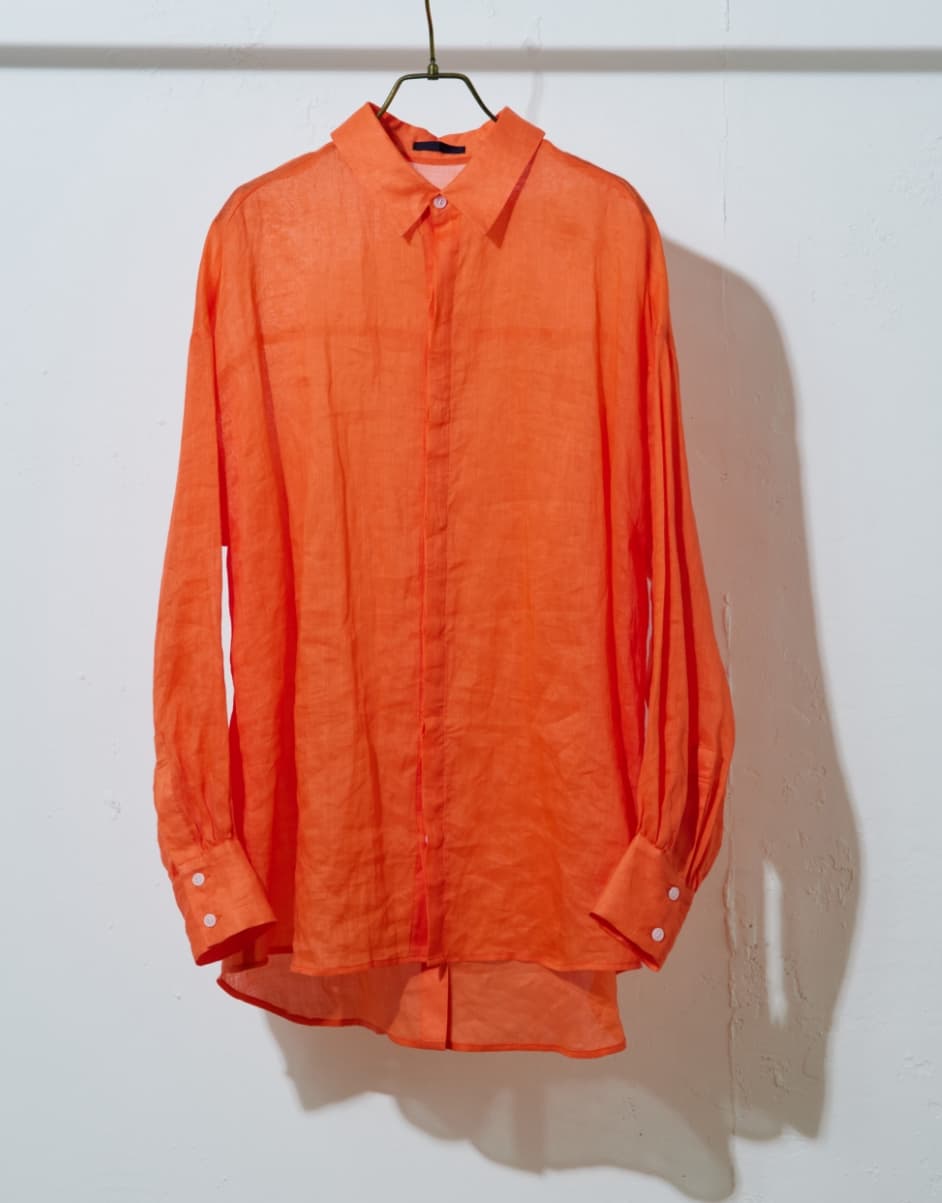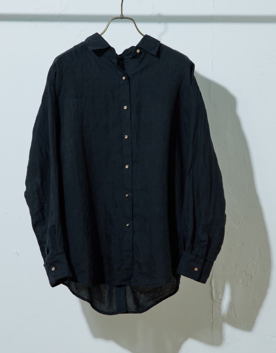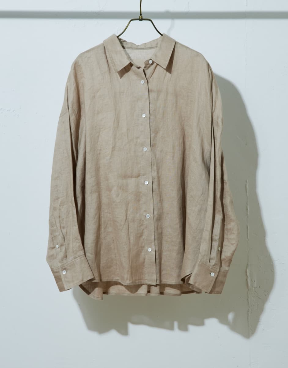 ナチュラルで程よくシアー感のある大人っぽいリネンシャツ。トップスとしてさらりとタイトスカートやデニムと合わせたり、Tシャツやキャミソール・ワンピースの上からバサッと羽織るのもおすすめです。