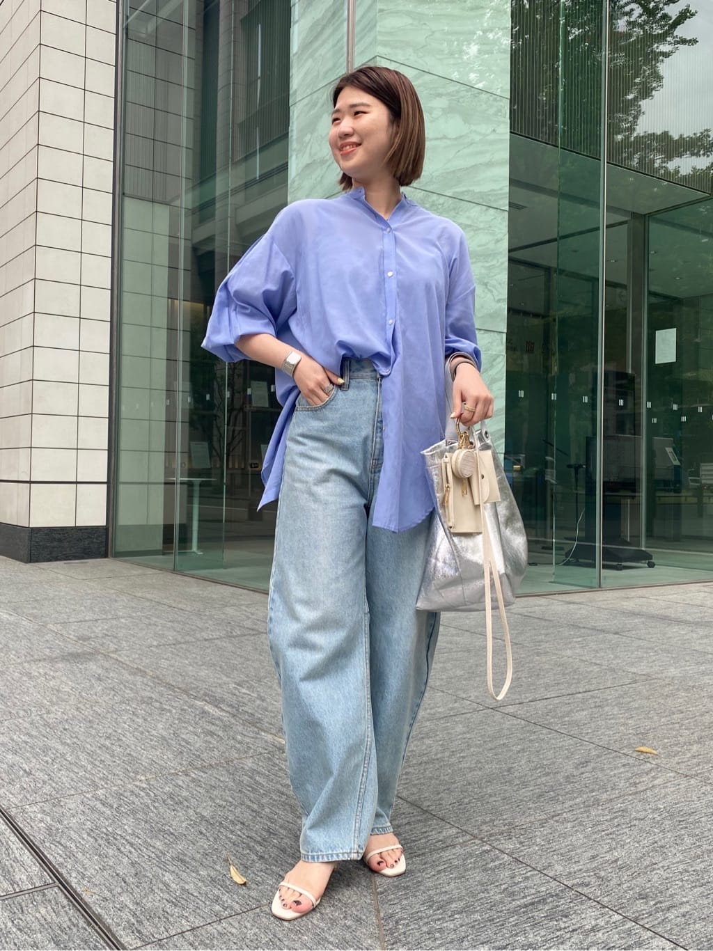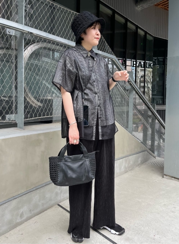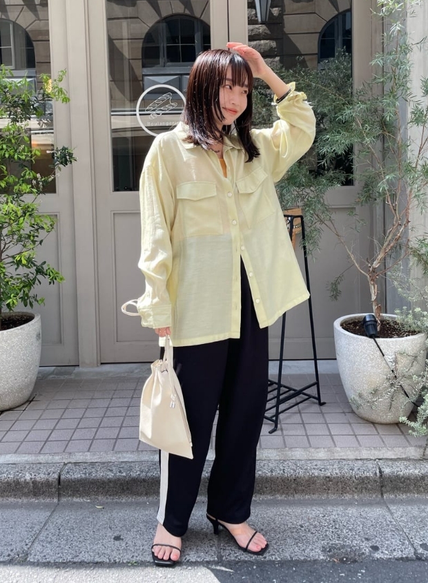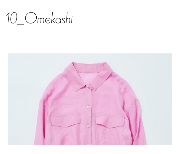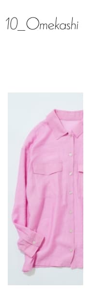 Omekashiのシアーシャツは程よい透け感なので、上品で女性らしい印象で着ていただけます。