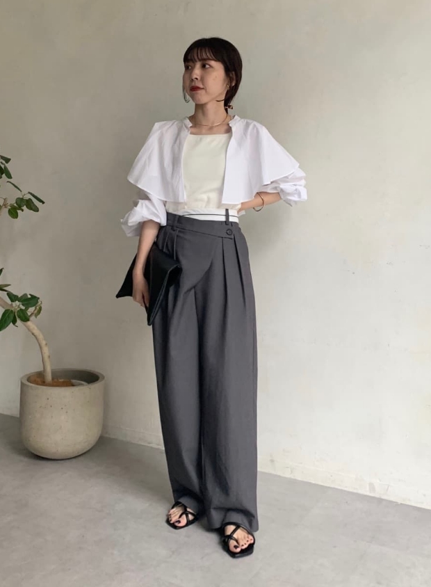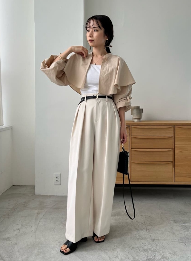 羽織としてもケープ襟としても着回しの効くデザイン。インナーはキャミソールで抜け感を出したり、Tシャツでカジュアルに合わせるなど幅広くコーデが楽しめます。
