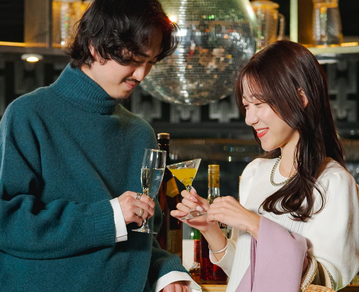 会話が弾む大人な雰囲気の隠れ家バーで 恋人と忘年会