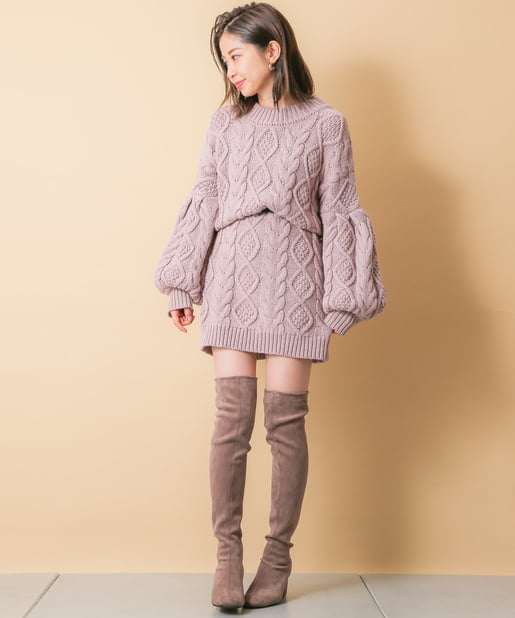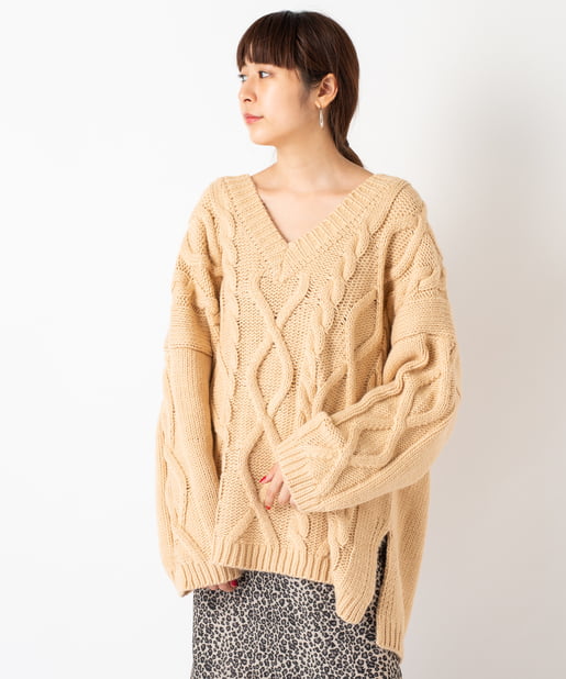 編み目がざっくりとしたケーブルニットならリラクシーな