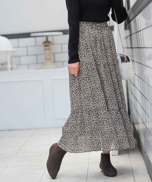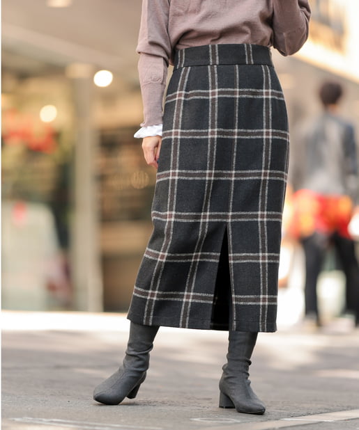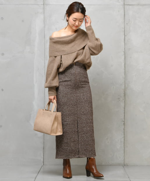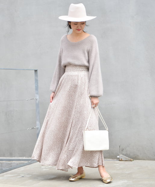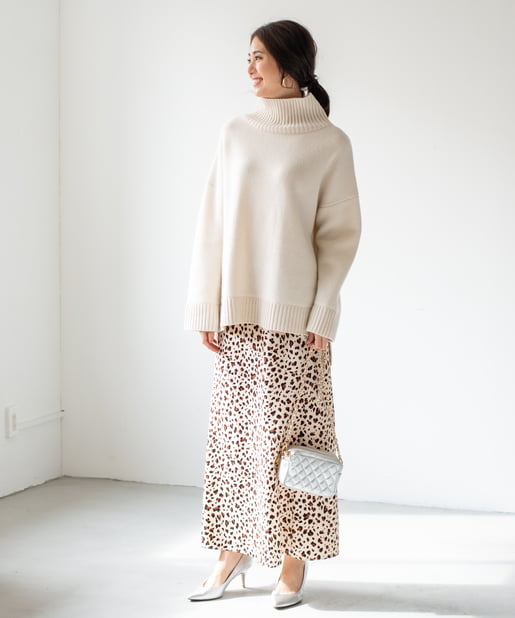 柔らかな素材のボトムスなら、冬のニットにもぴったりで